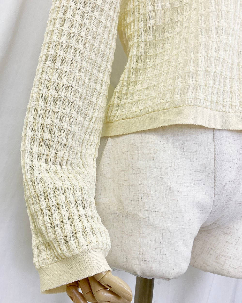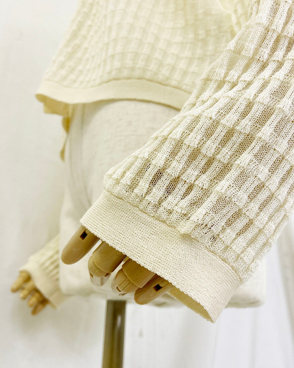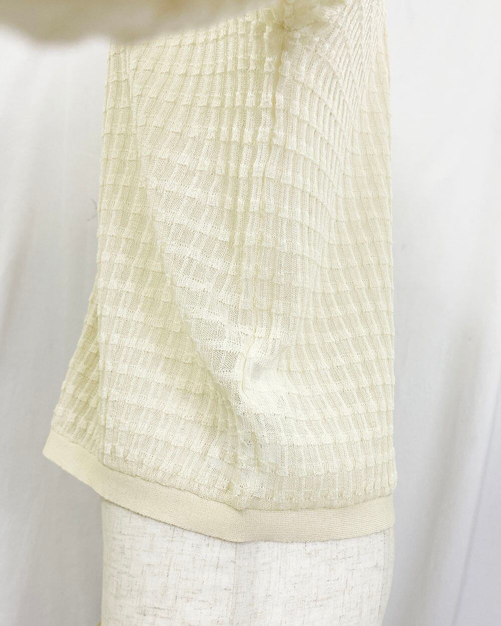 軽やかなニット素材が肌に心地よく、上品な透け感が春夏らしい抜け感を演出します。