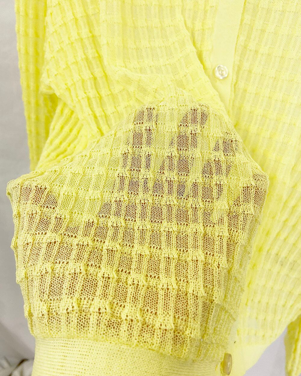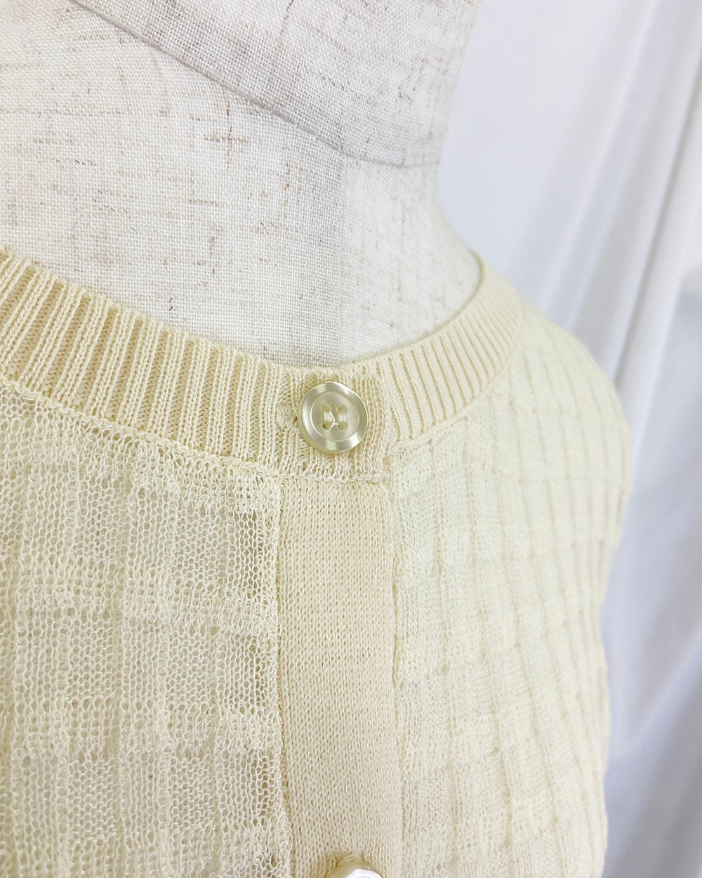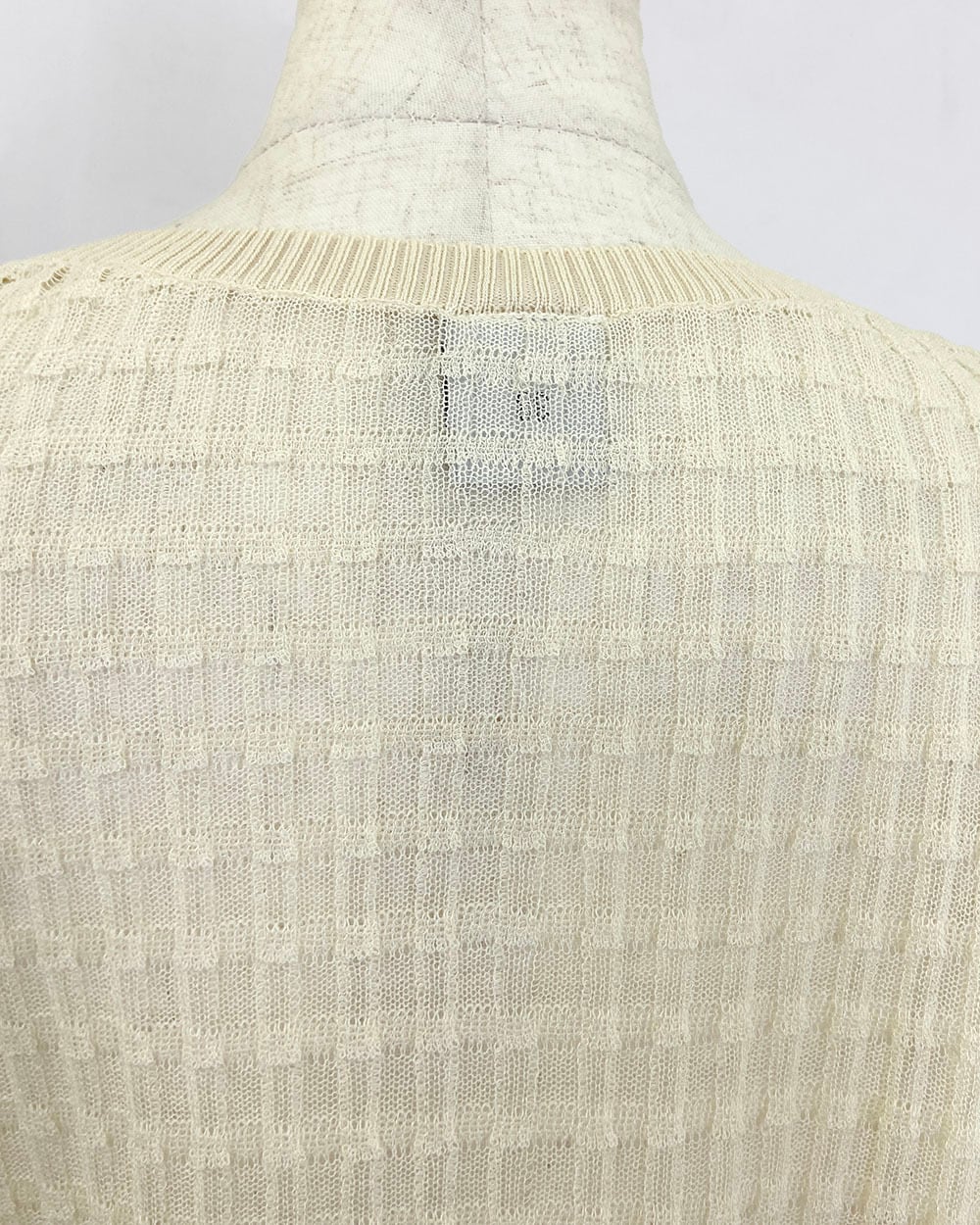 軽やかなニット素材が肌に心地よく、上品な透け感が春夏らしい抜け感を演出します。