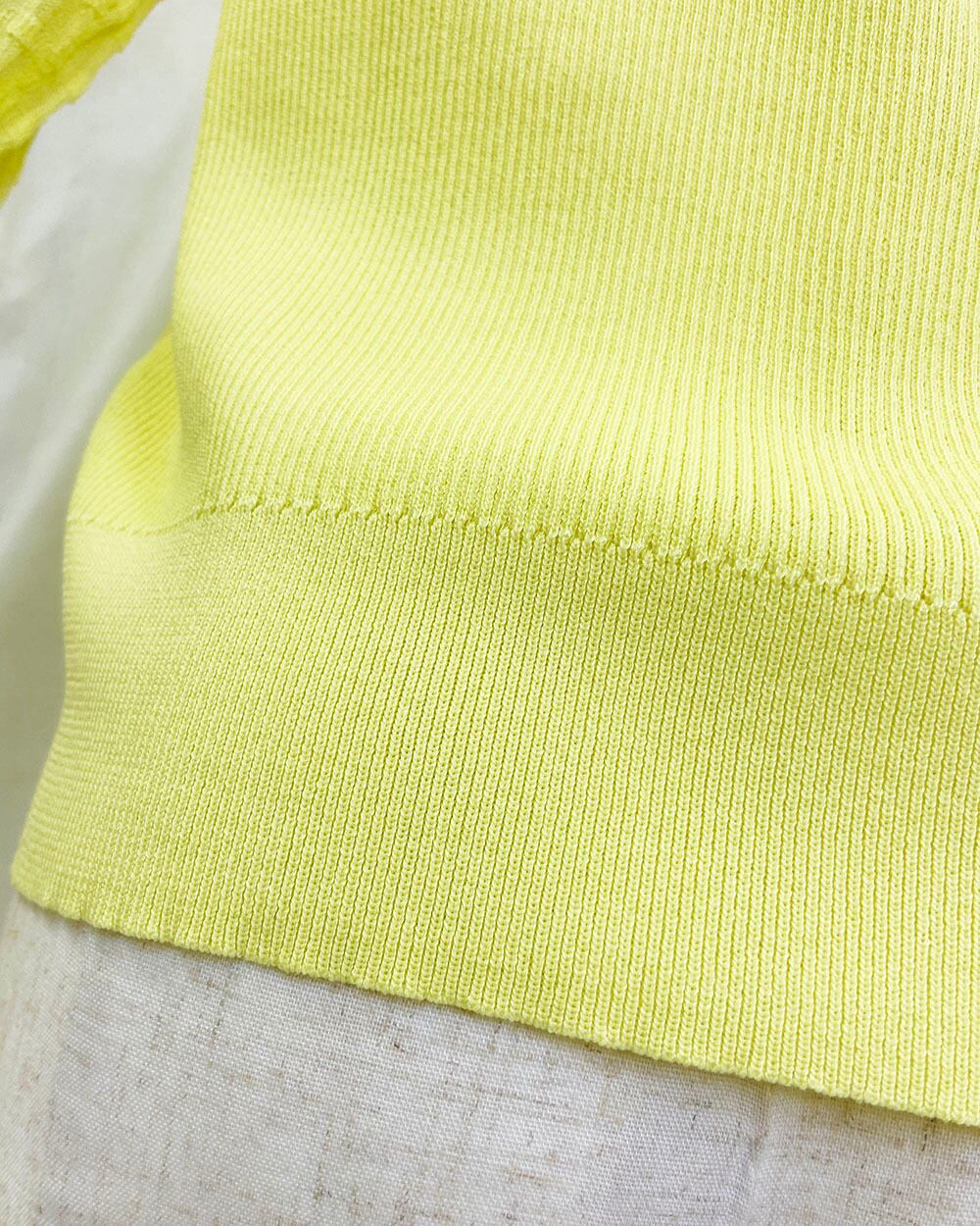 シアーな糸を使用した、12Gレーヨンポリエステル素材のハーフスリーブプルオーバー。