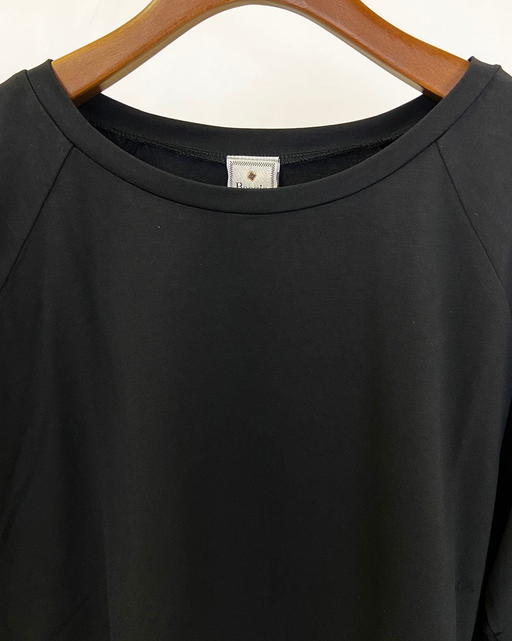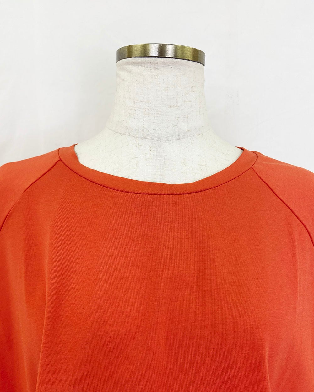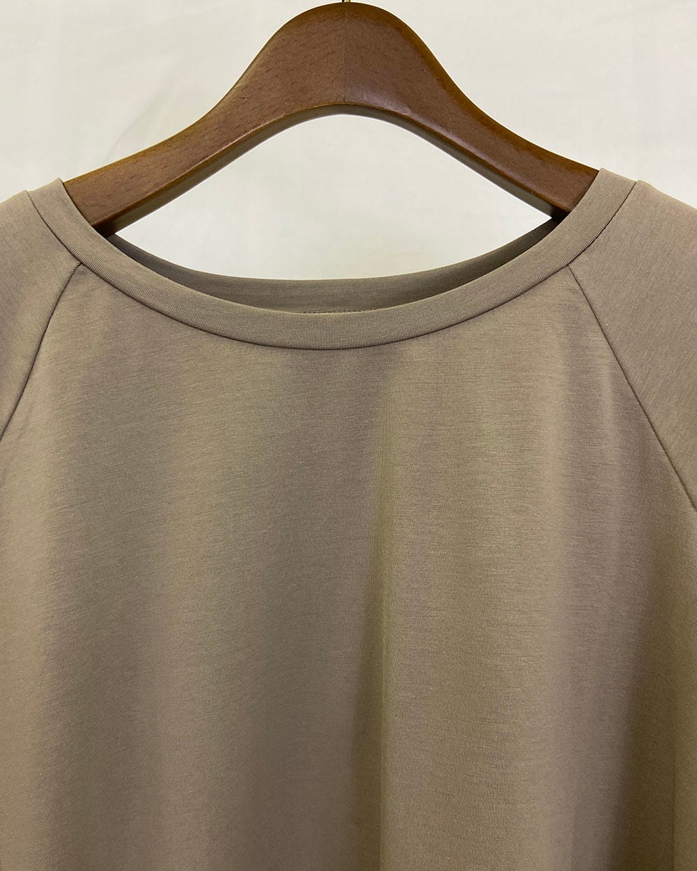 表面のきれいなストレッチ天竺素材を使用した、サイド切替ラグランスリーブプルオーバー。