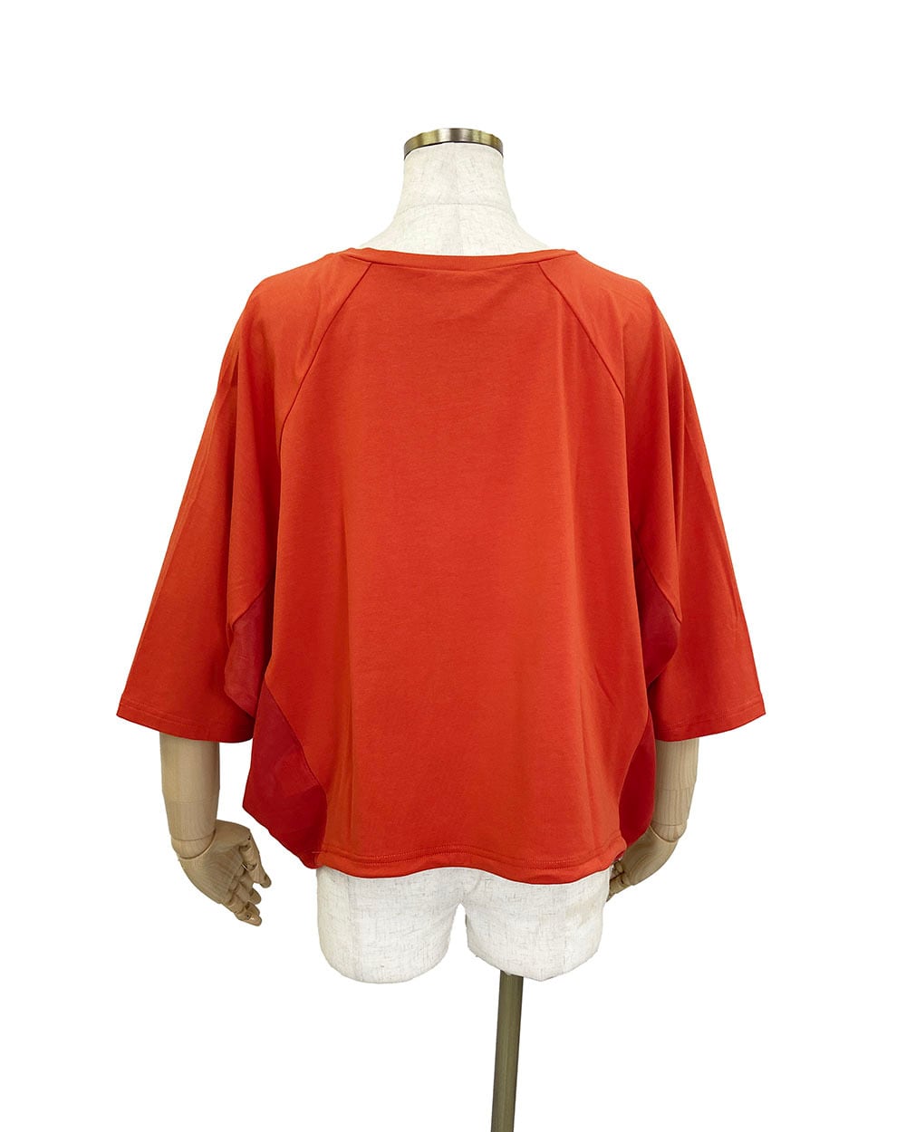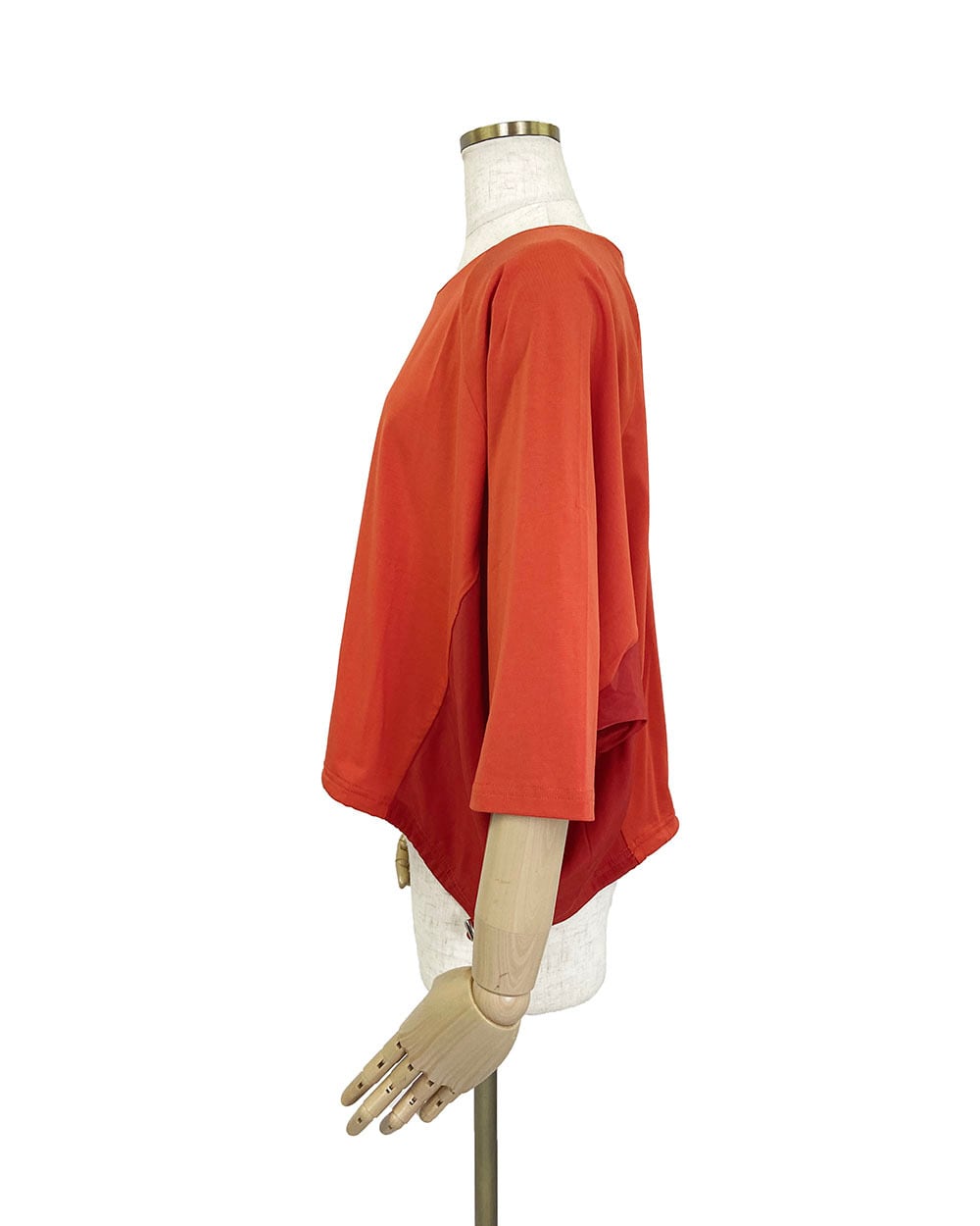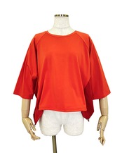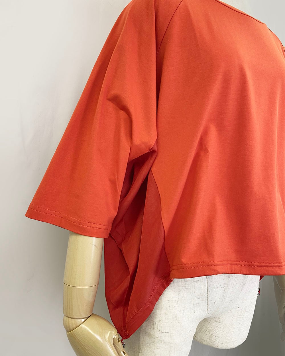 ハーフスリーブとラグランスリーブの組み合わせで動きやすく、リラックス感のある着心地。