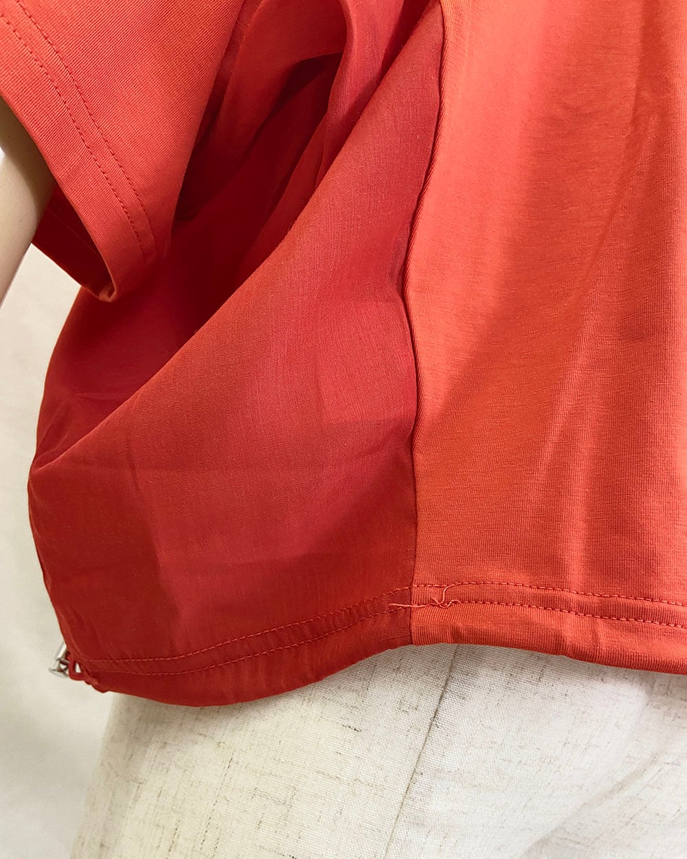 裾のドロスト仕様により、シルエットをお好みで調整できるデザインです。