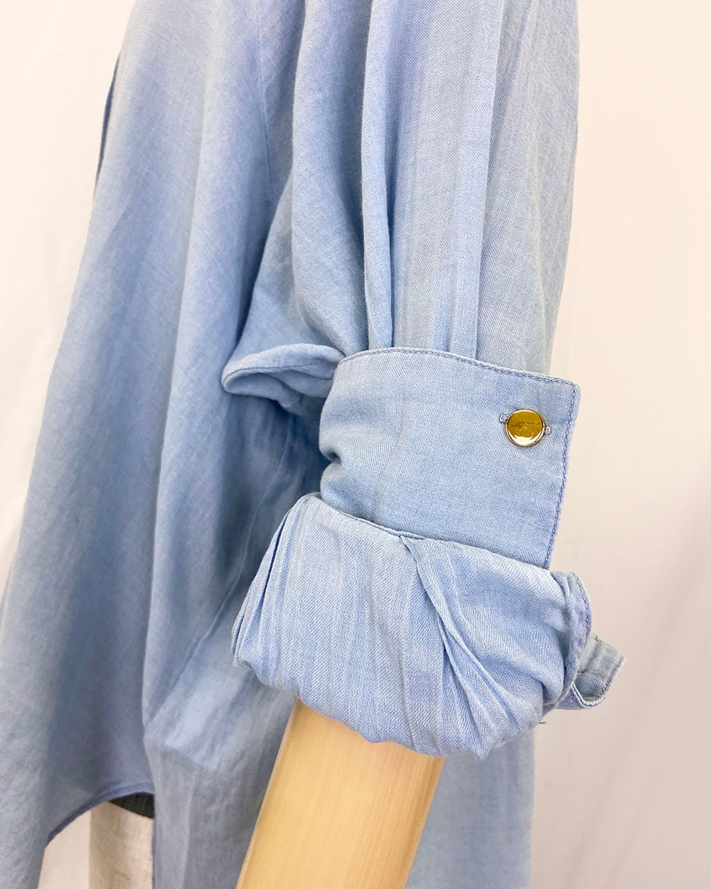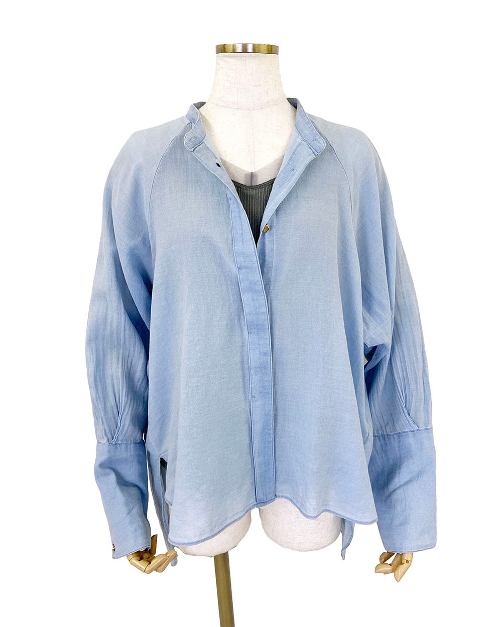 2.2ozのシアーデニム素材を使用した、軽やかで柔らかな着心地のオーバーサイズシャツ。