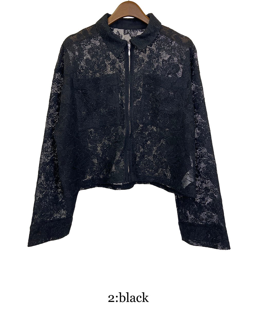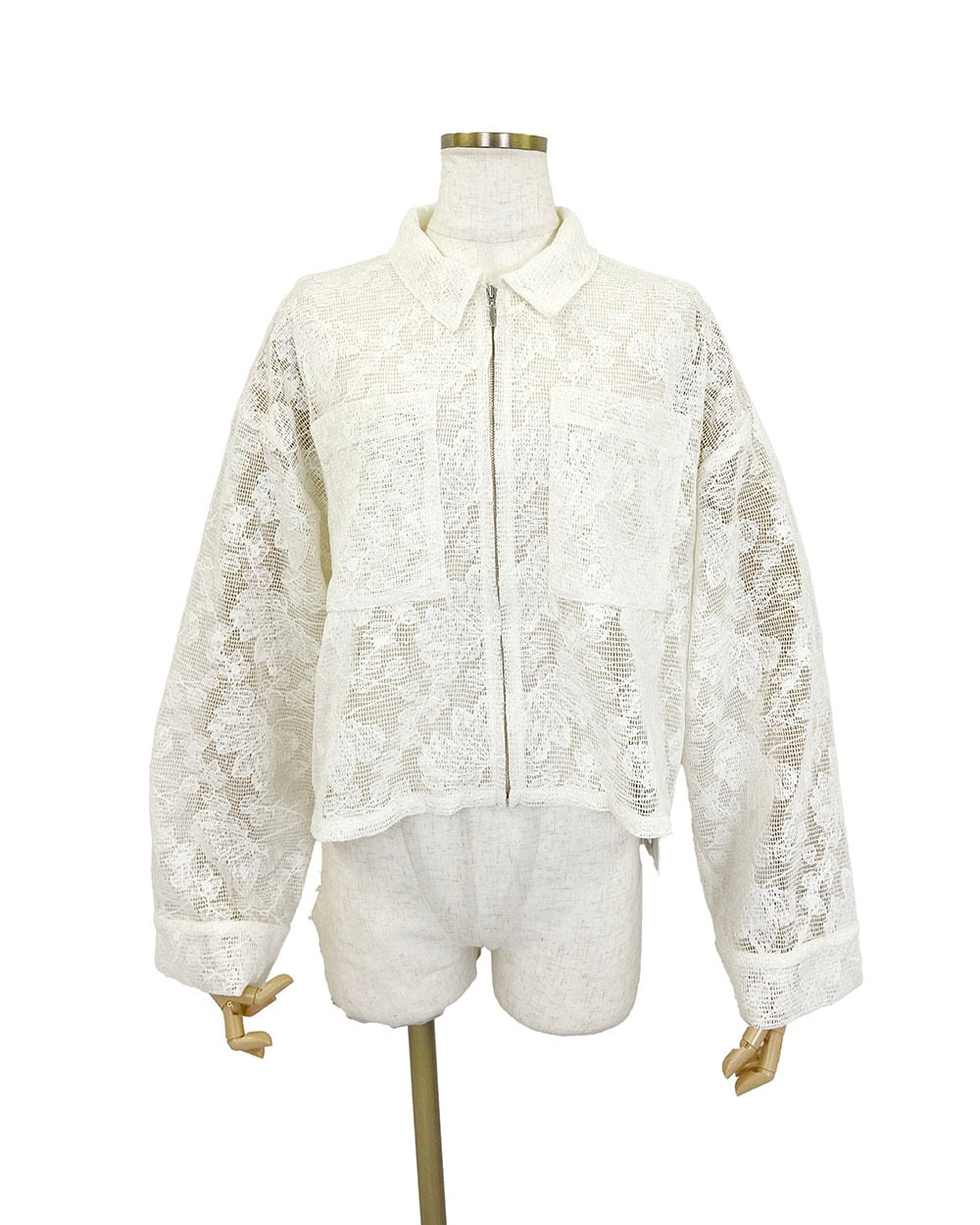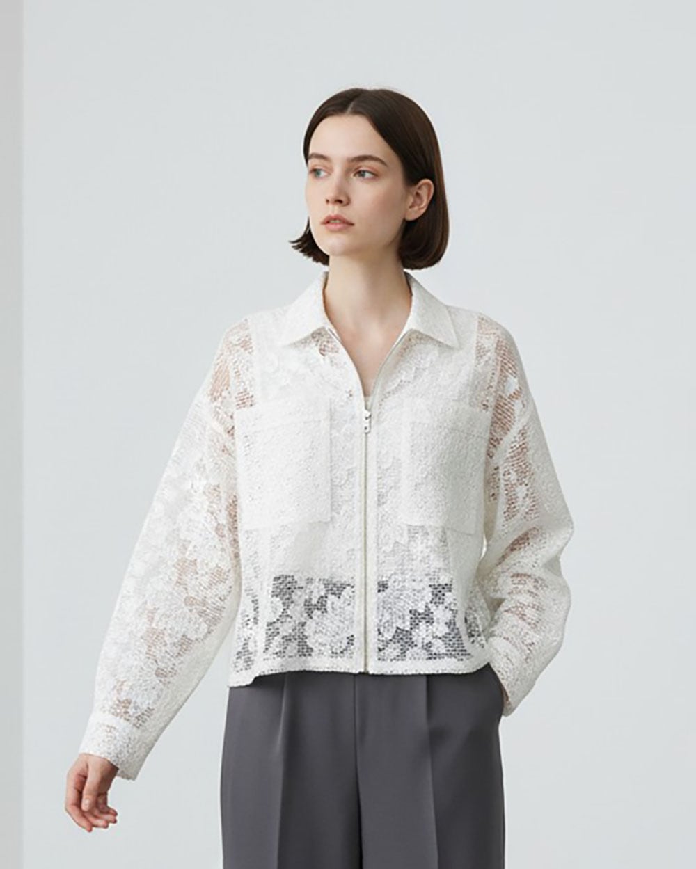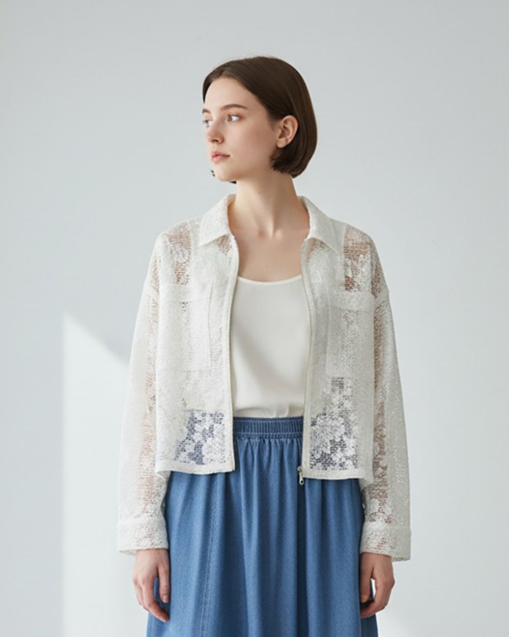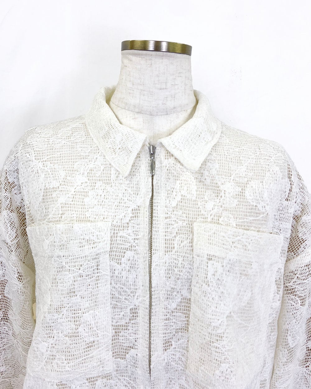 カラミメッシュに同色の刺繍を施した、繊細で上品な表情のワイドスリーブポケットブルゾン。