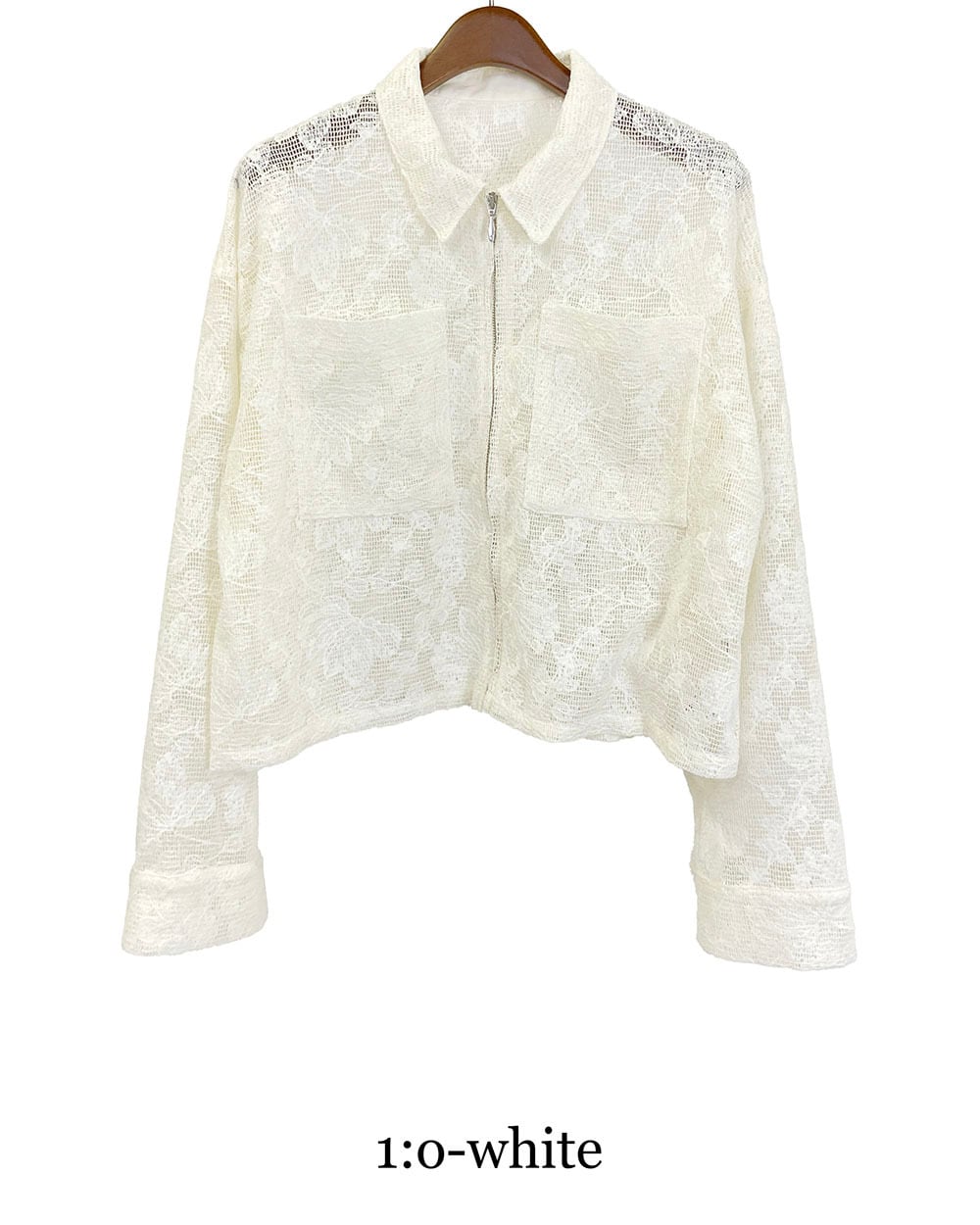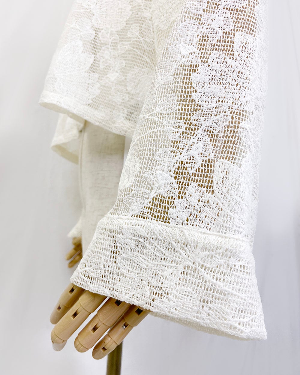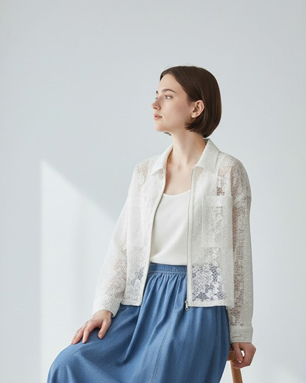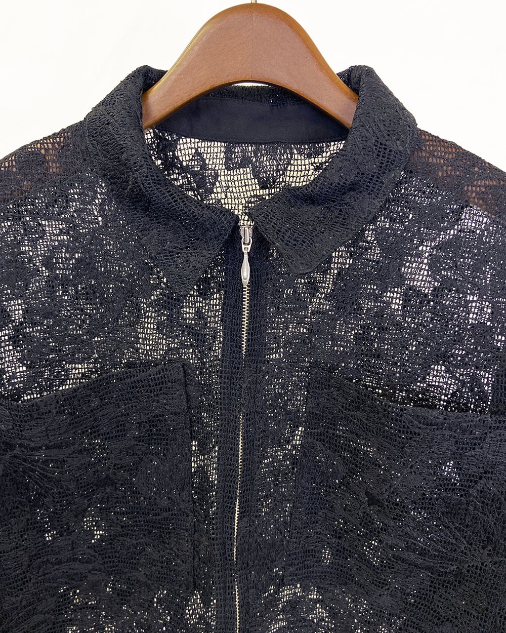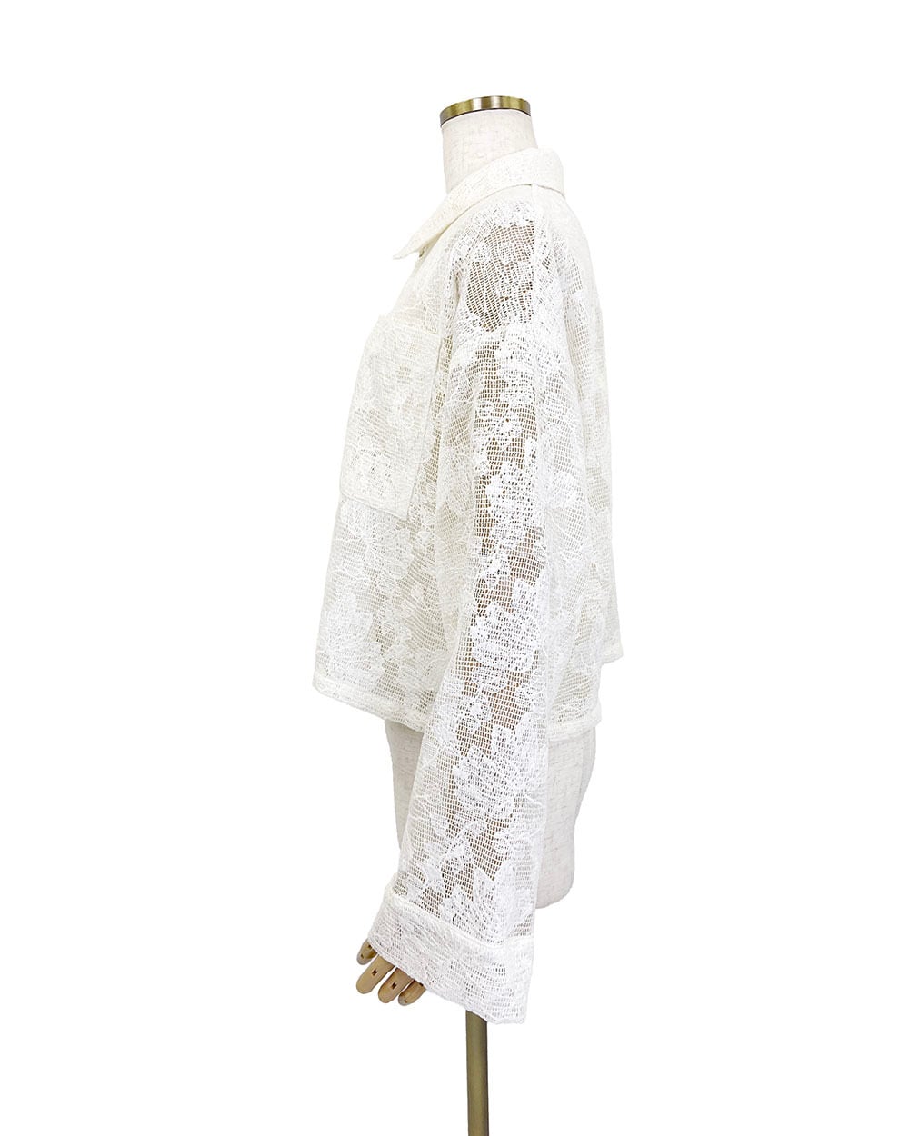 カラミメッシュに同色の刺繍を施した、繊細で上品な表情のワイドスリーブポケットブルゾン。