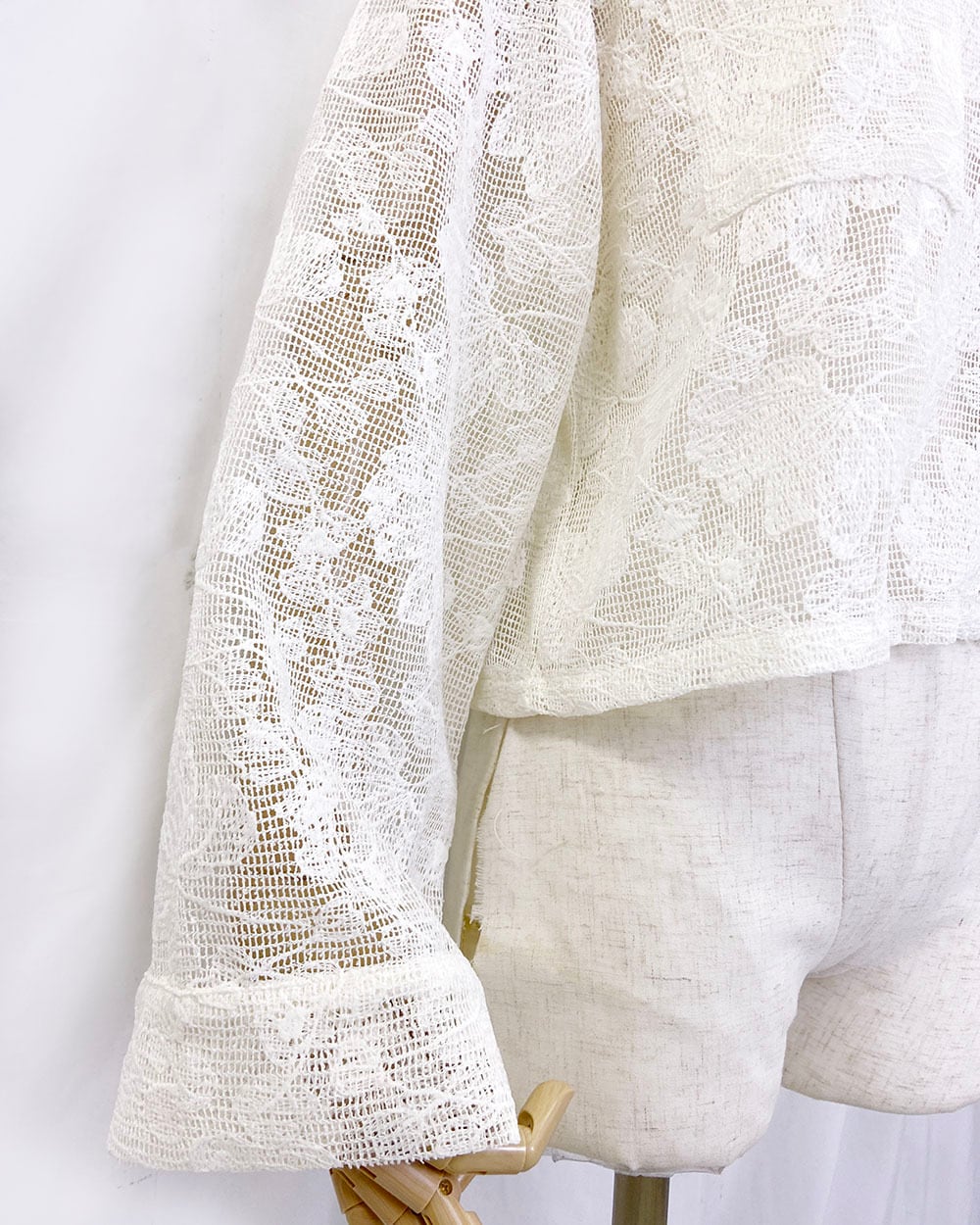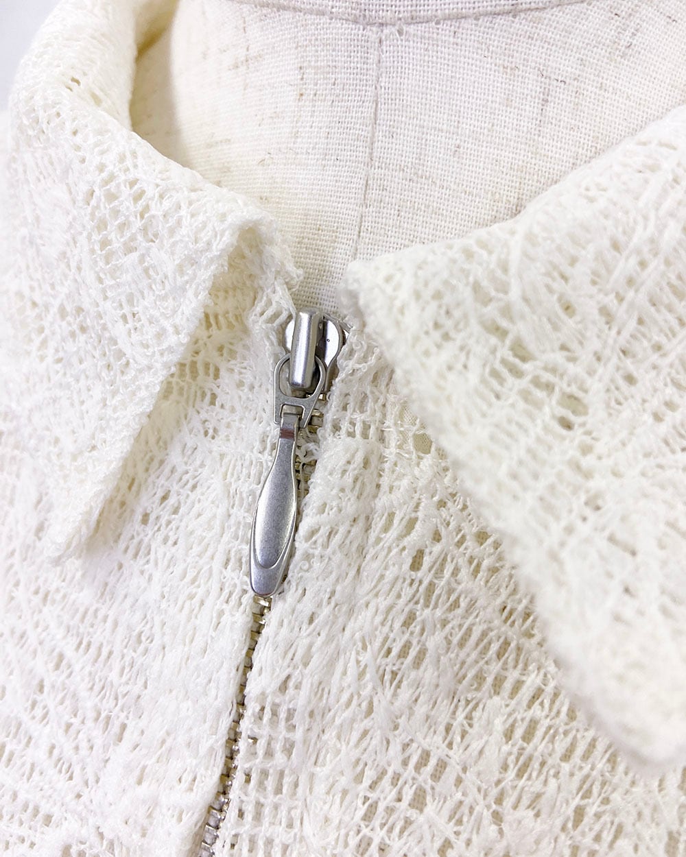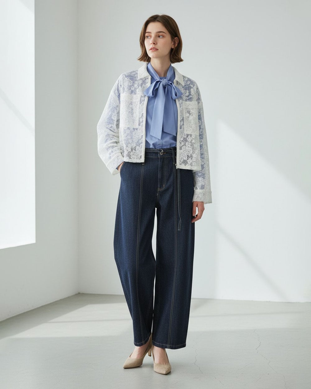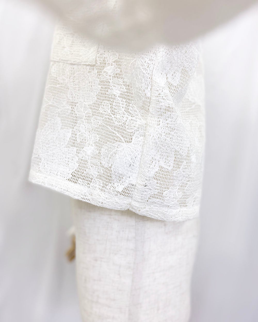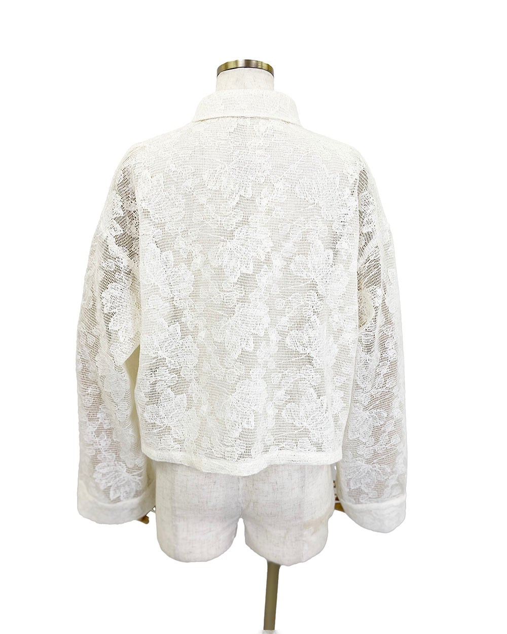 カラミメッシュに同色の刺繍を施した、繊細で上品な表情のワイドスリーブポケットブルゾン。