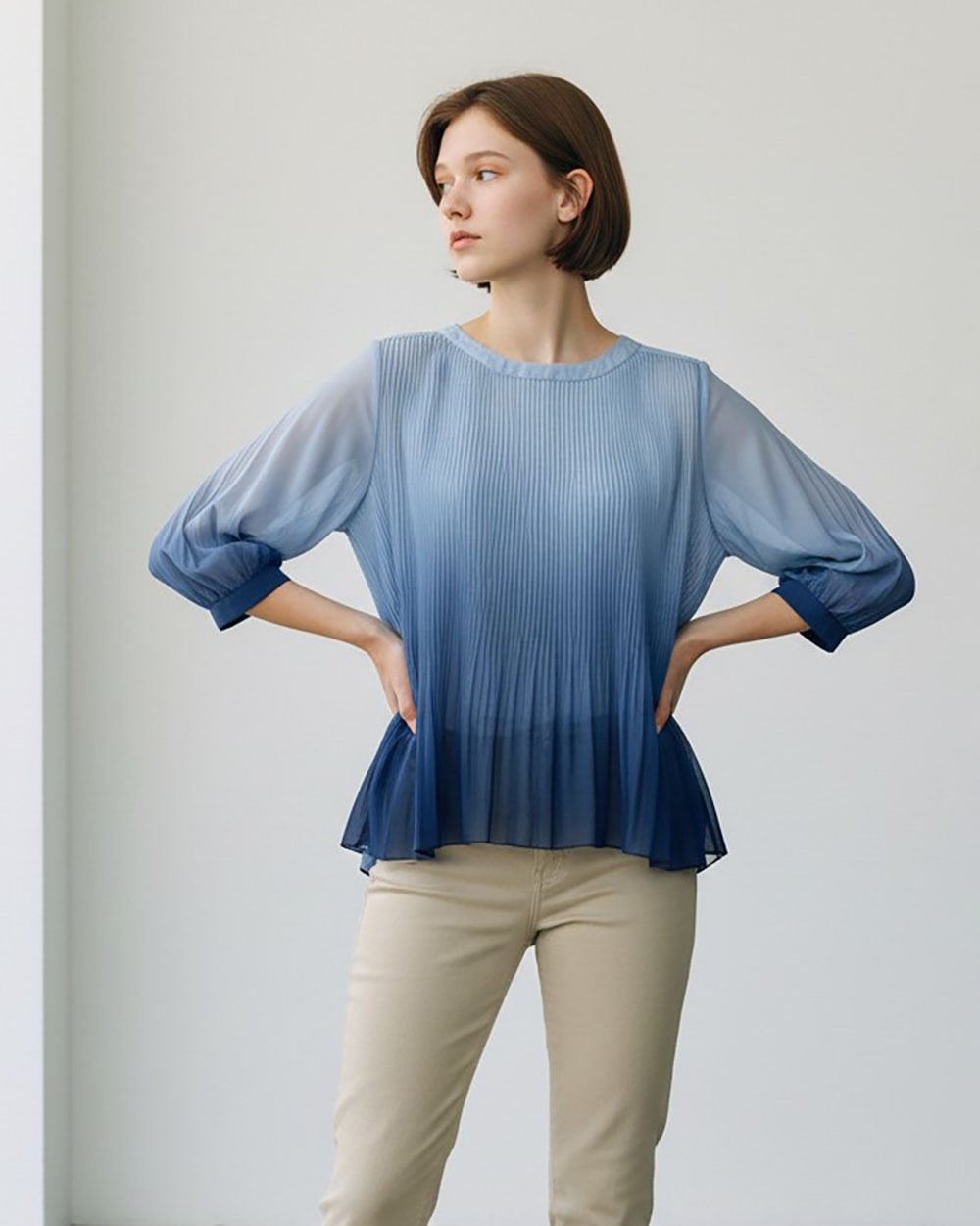 グラデーションプリーツブラウス