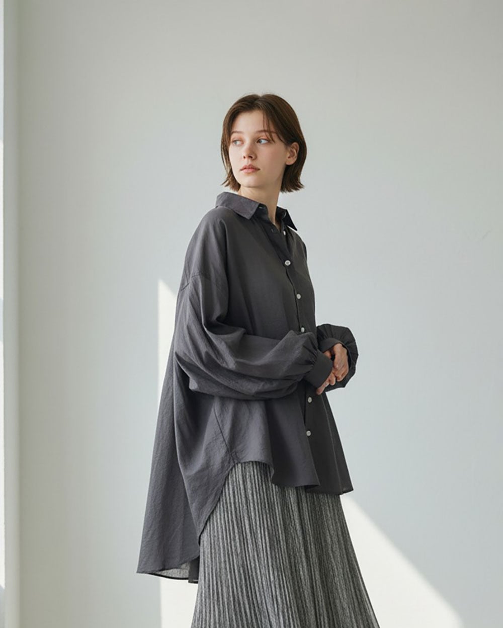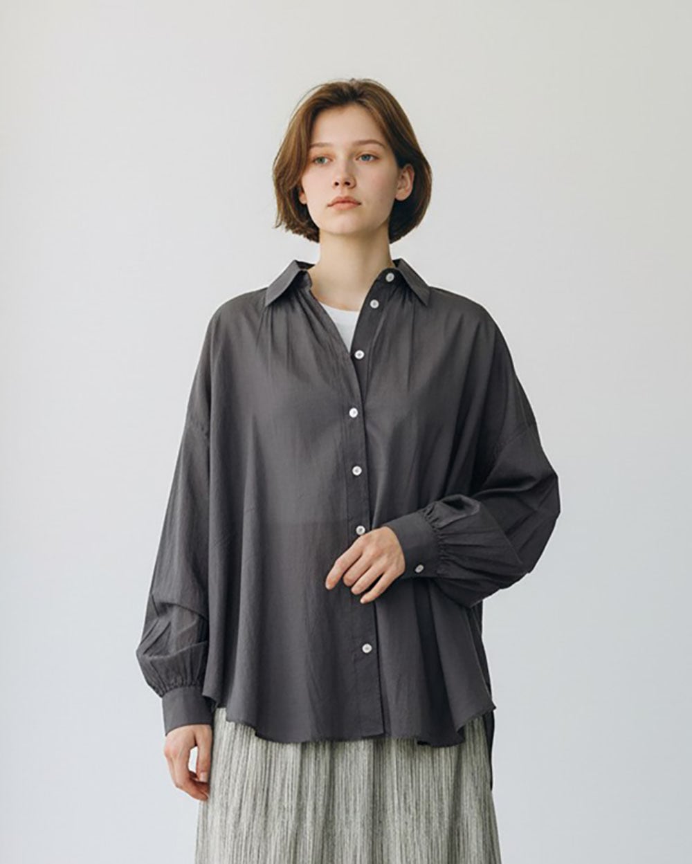 軽やかな素材感とリラックスしたフォルムで、上品さと心地よさを兼ね備えた一枚です。