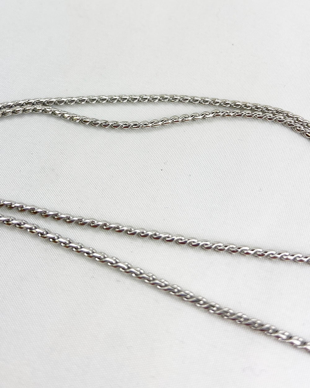 少し太めのロープ柄のようなチェーンが、上品さの中にモードな印象をプラス。