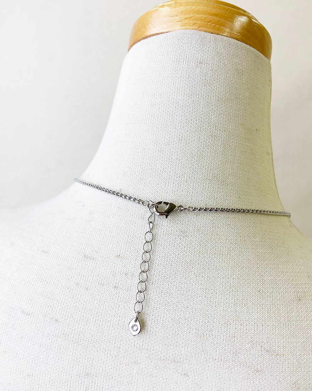 立体的なリングの輝きが首元を華やかに演出し、シンプルな装いにも映えるデザインです。