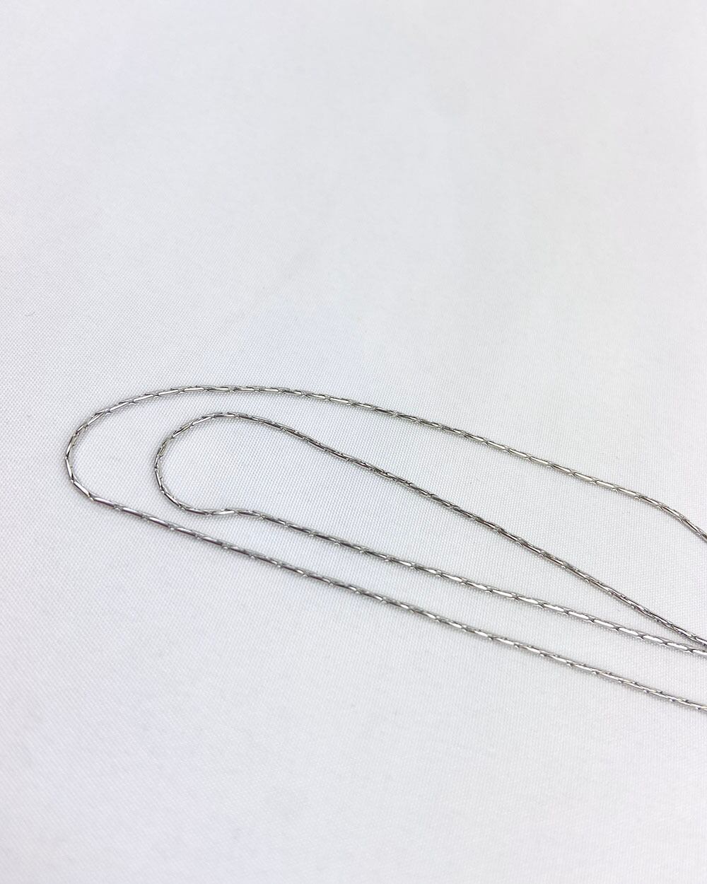 艶やかなメタルの質感が、首元にクールな輝きを添えます。