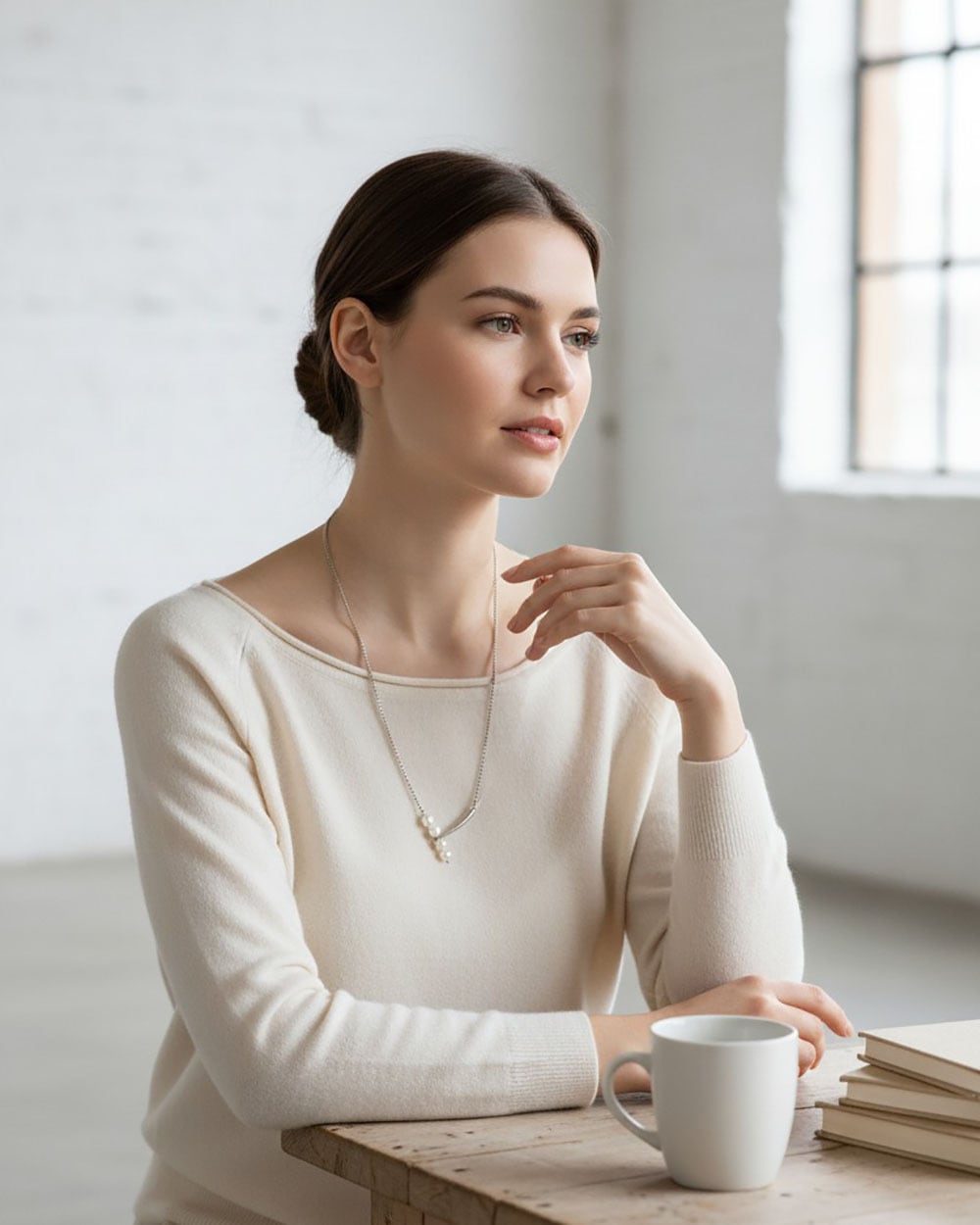 ・季節を問わず使える、上品で万能なロングネックレス。