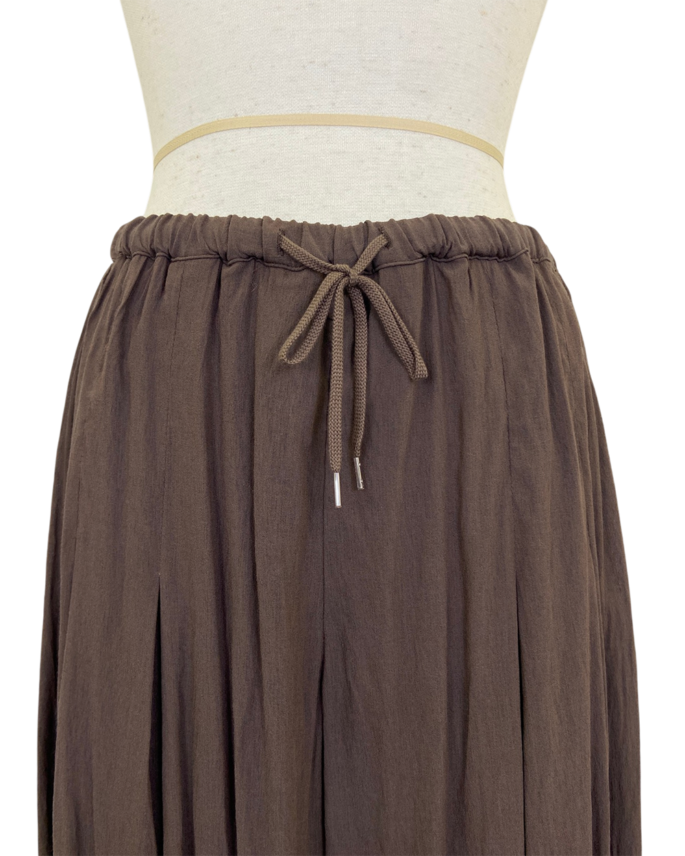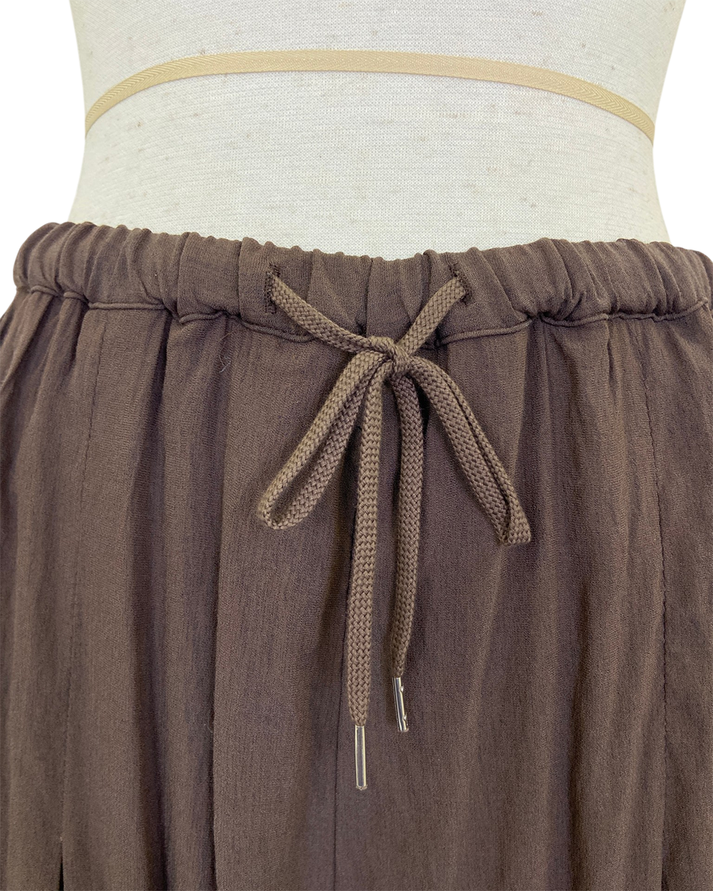 ウエストは総ゴム仕様。ドロスト紐付きのリラックスデザイン。