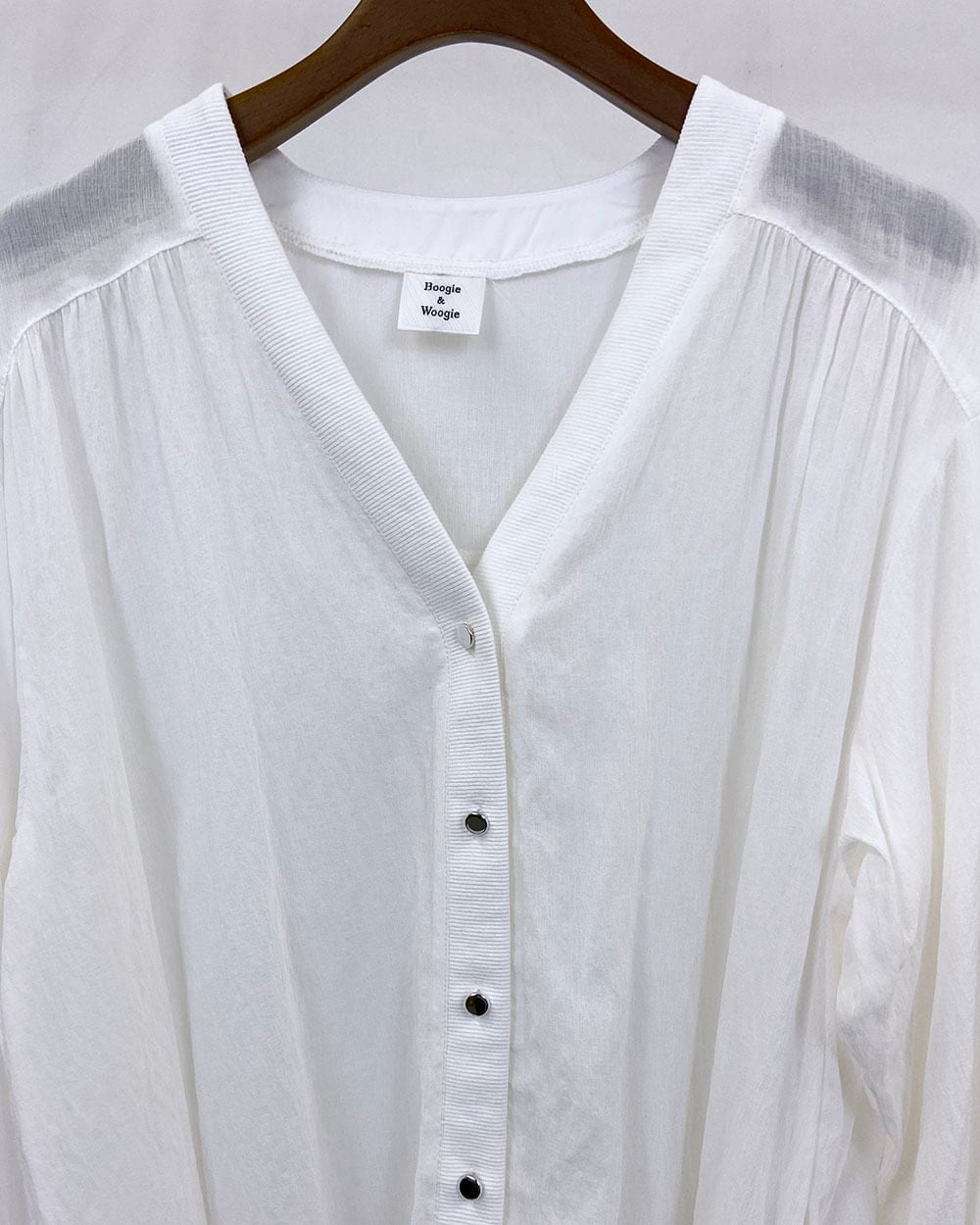 後ヨーク部分に入ったギャザーが、ふんわりとした立体感をプラス。