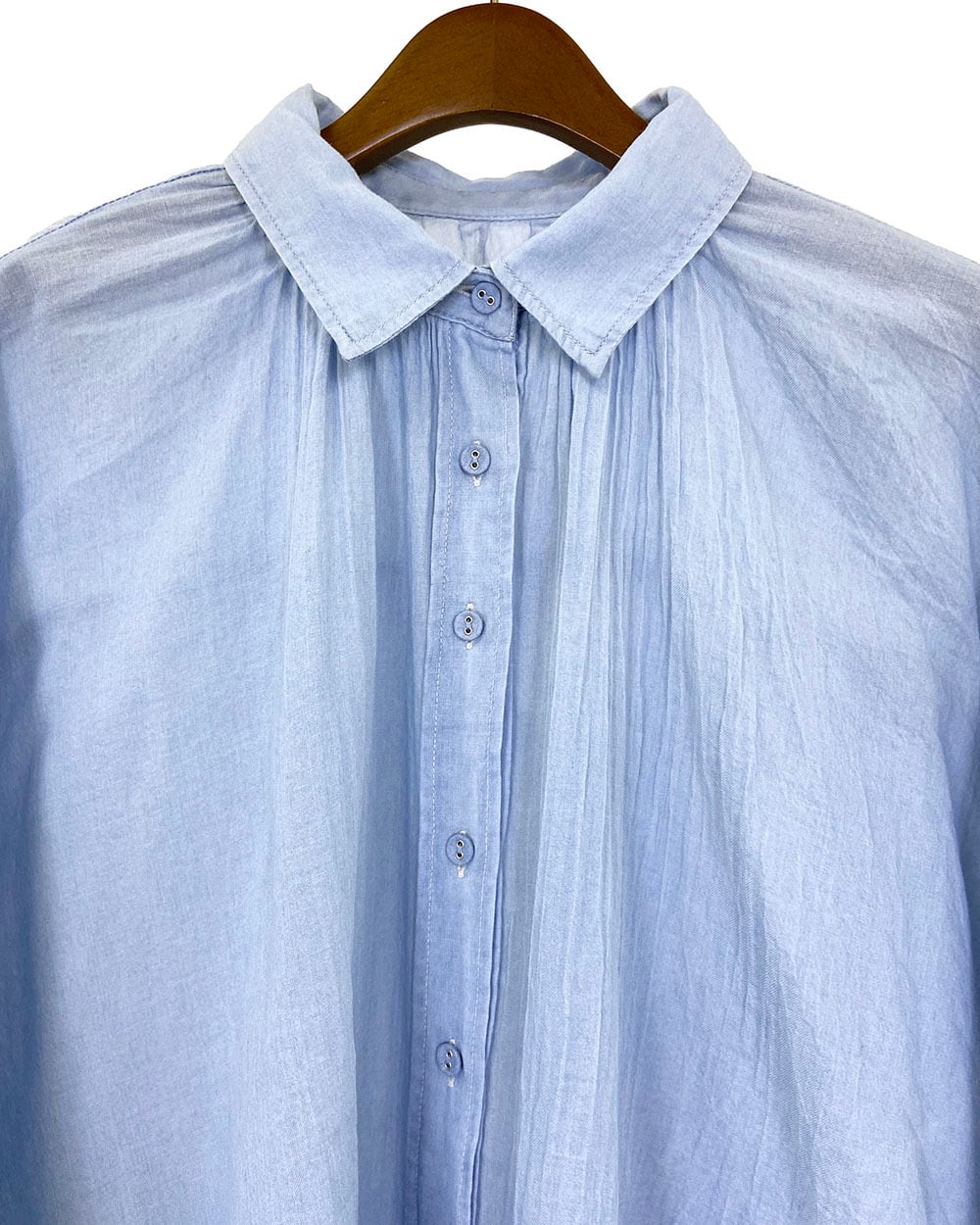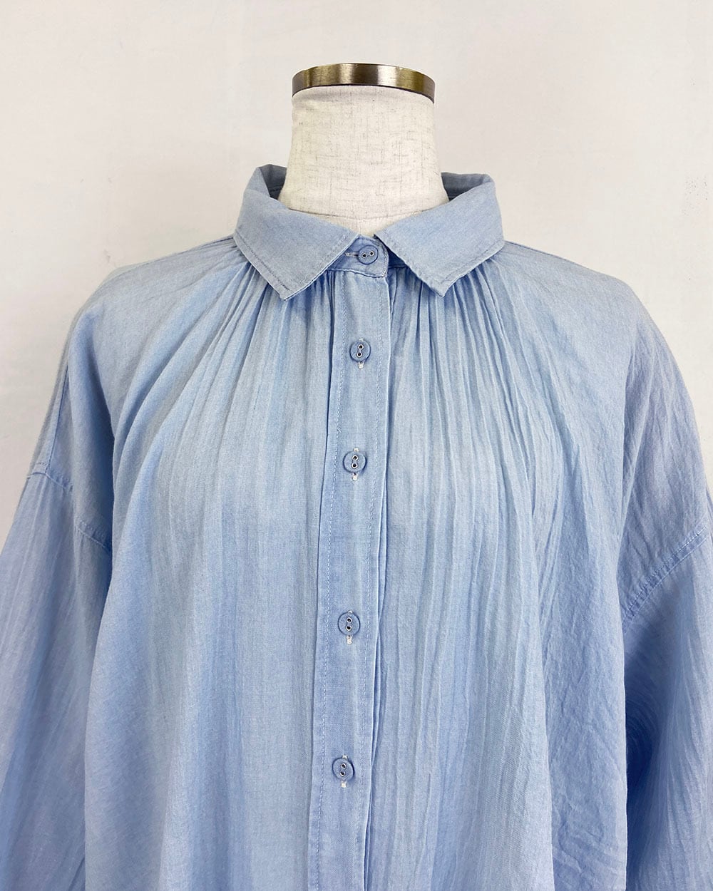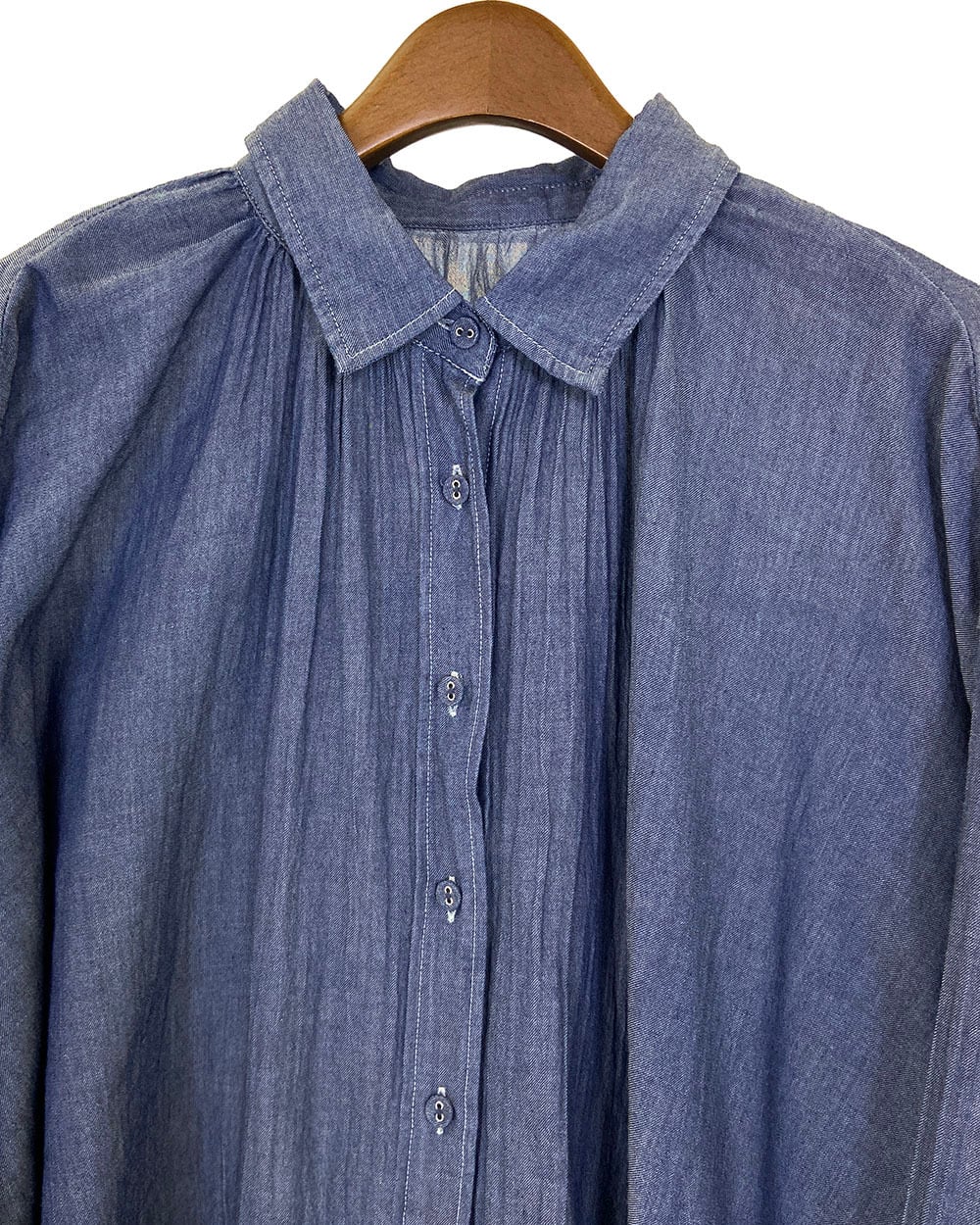 軽やかな2ozシアーデニムをインディゴ染料で仕上げ、ナチュラルな風合いと透け感を楽しめる一枚です。