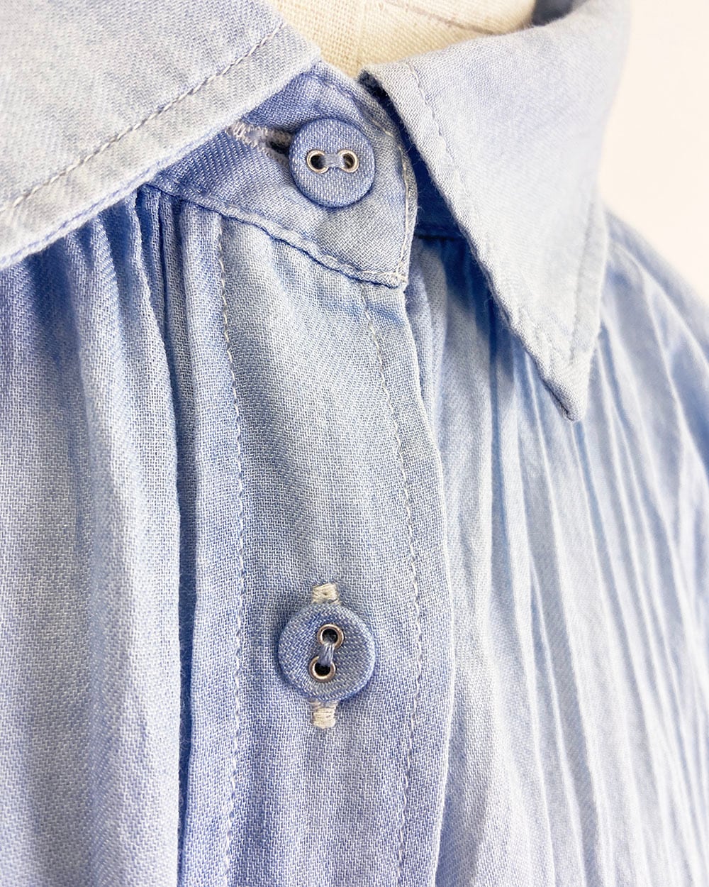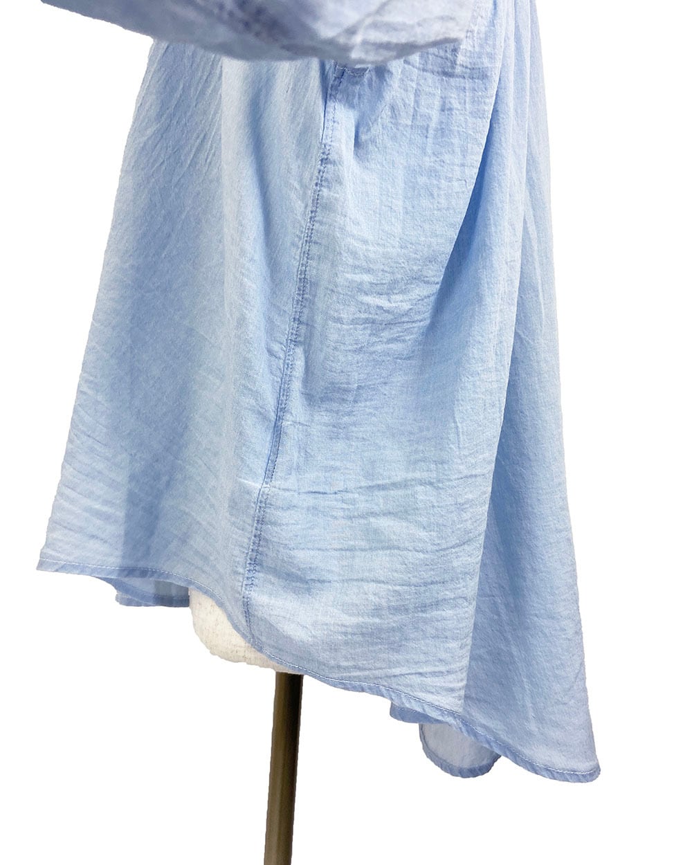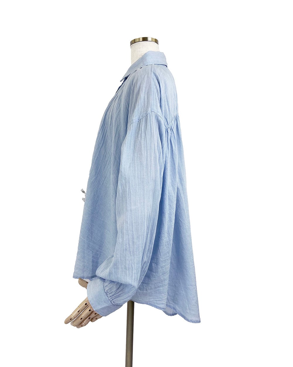 軽やかな2ozシアーデニムをインディゴ染料で仕上げ、ナチュラルな風合いと透け感を楽しめる一枚です。