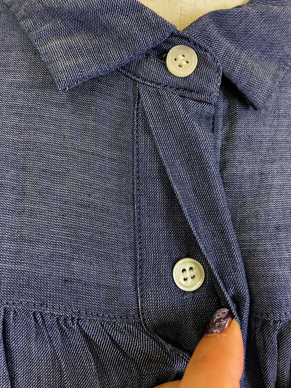 落ち感のあるシアーデニム素材を使用した、軽やかで上品なシャツブラウス。