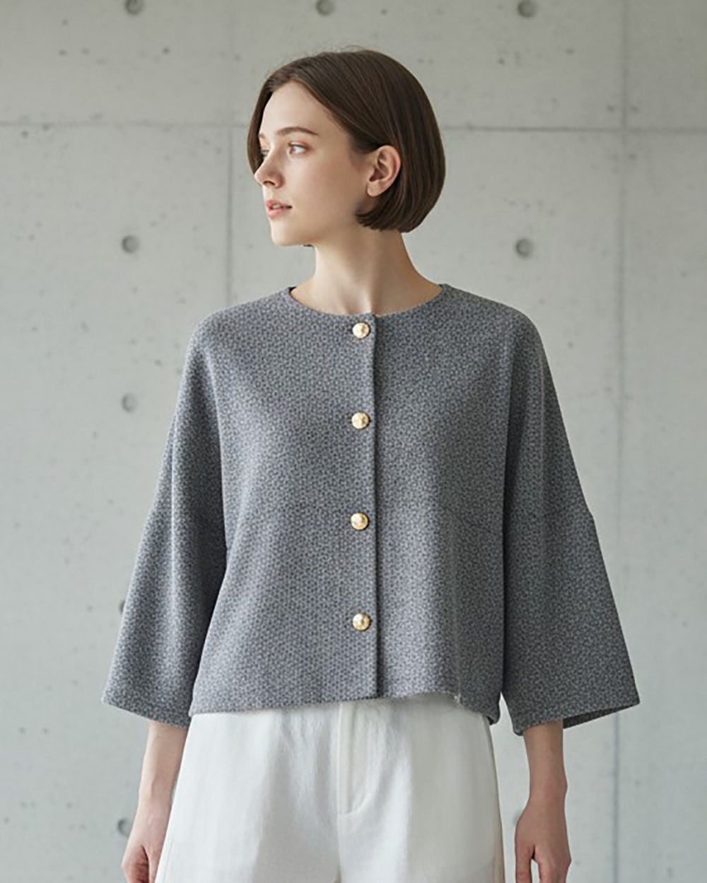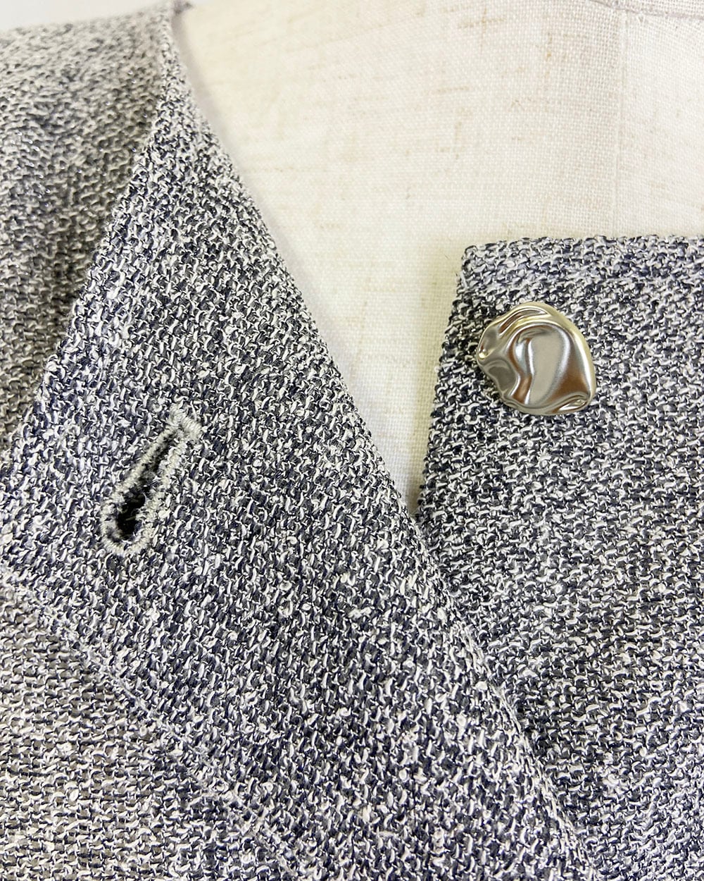 フロントには表面に凹凸感のある変形ボタンをあしらい、デザインのアクセントに。