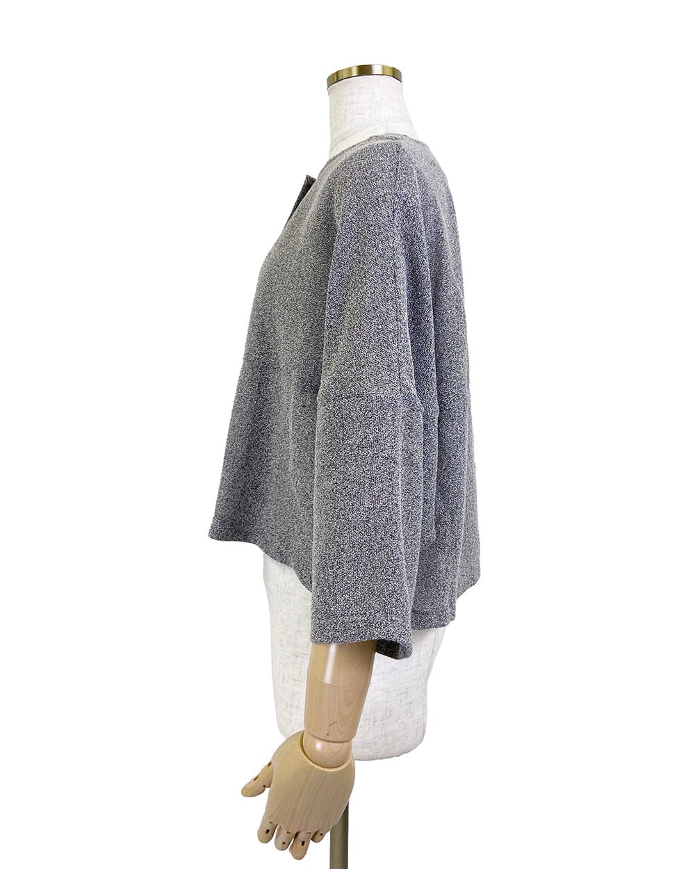 変形ラグランスリーブが程よいボリューム感を生み、立体的なシルエットを演出します。