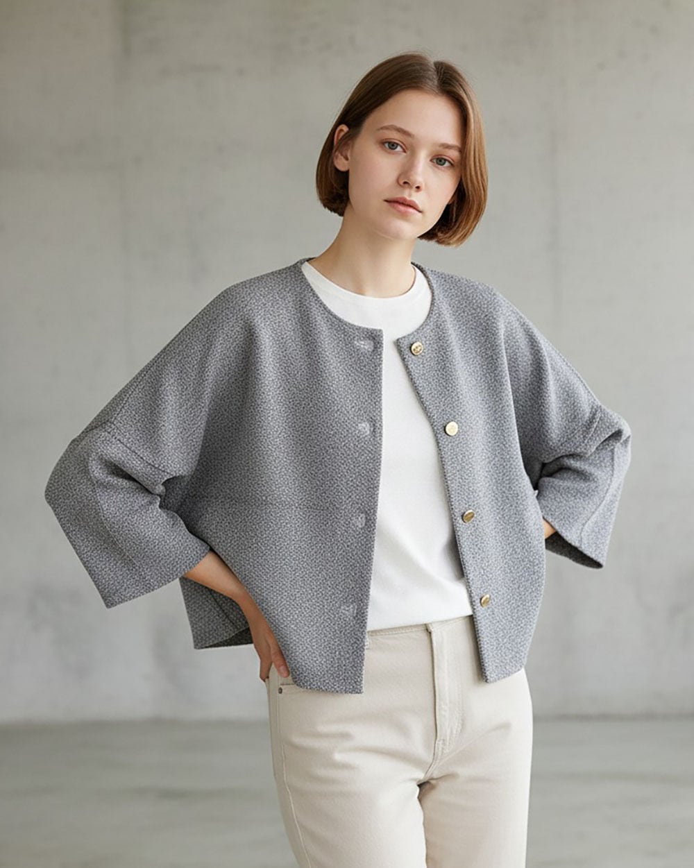 ショート丈でバランスが取りやすく、スタイルアップ効果も。