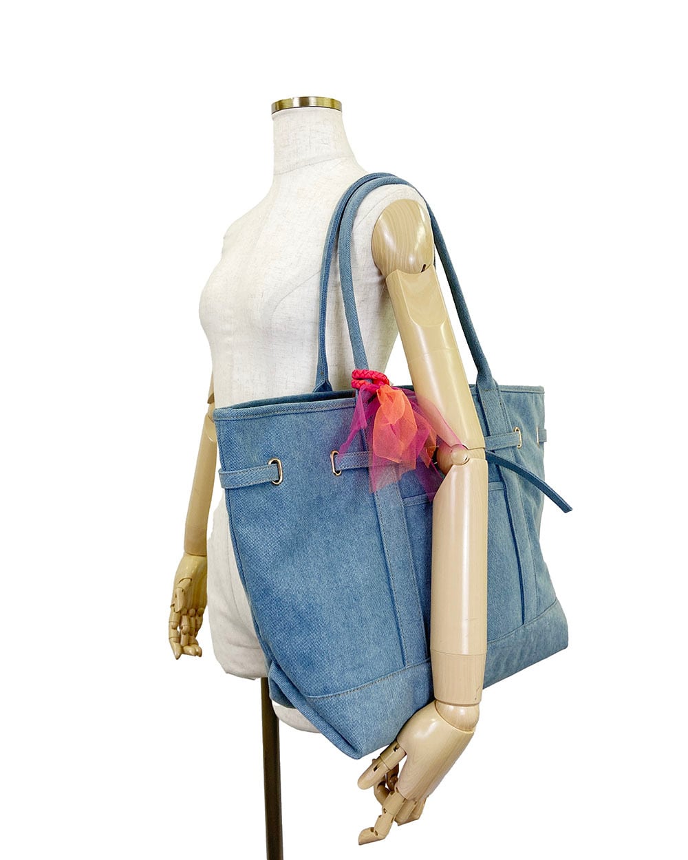 デニム素材を使用した、カジュアルでありながら大人っぽさを感じるトートバッグ。