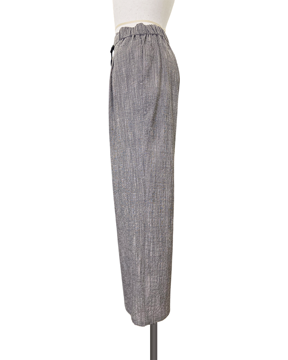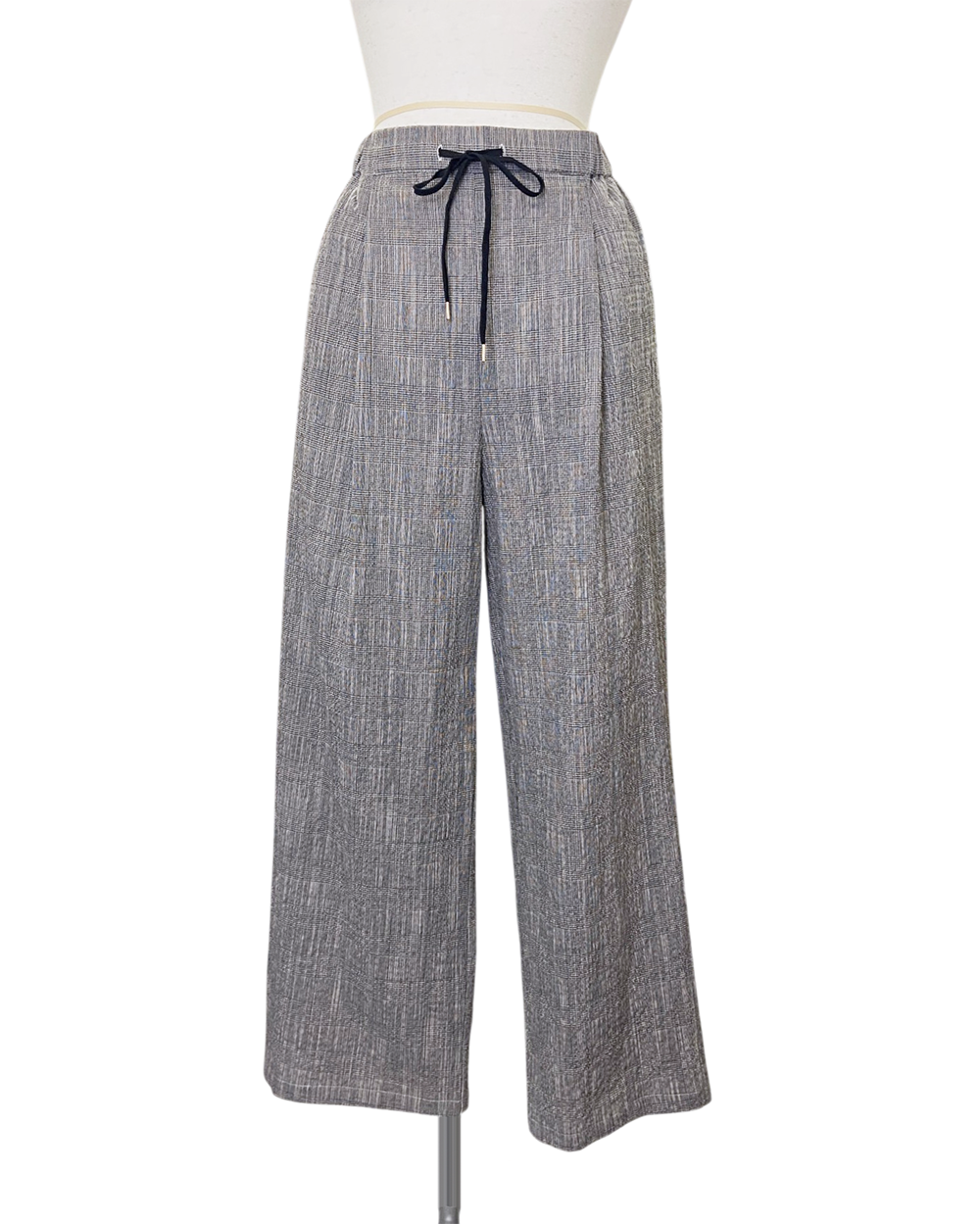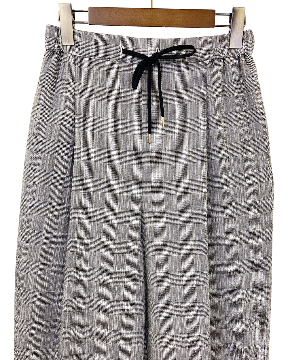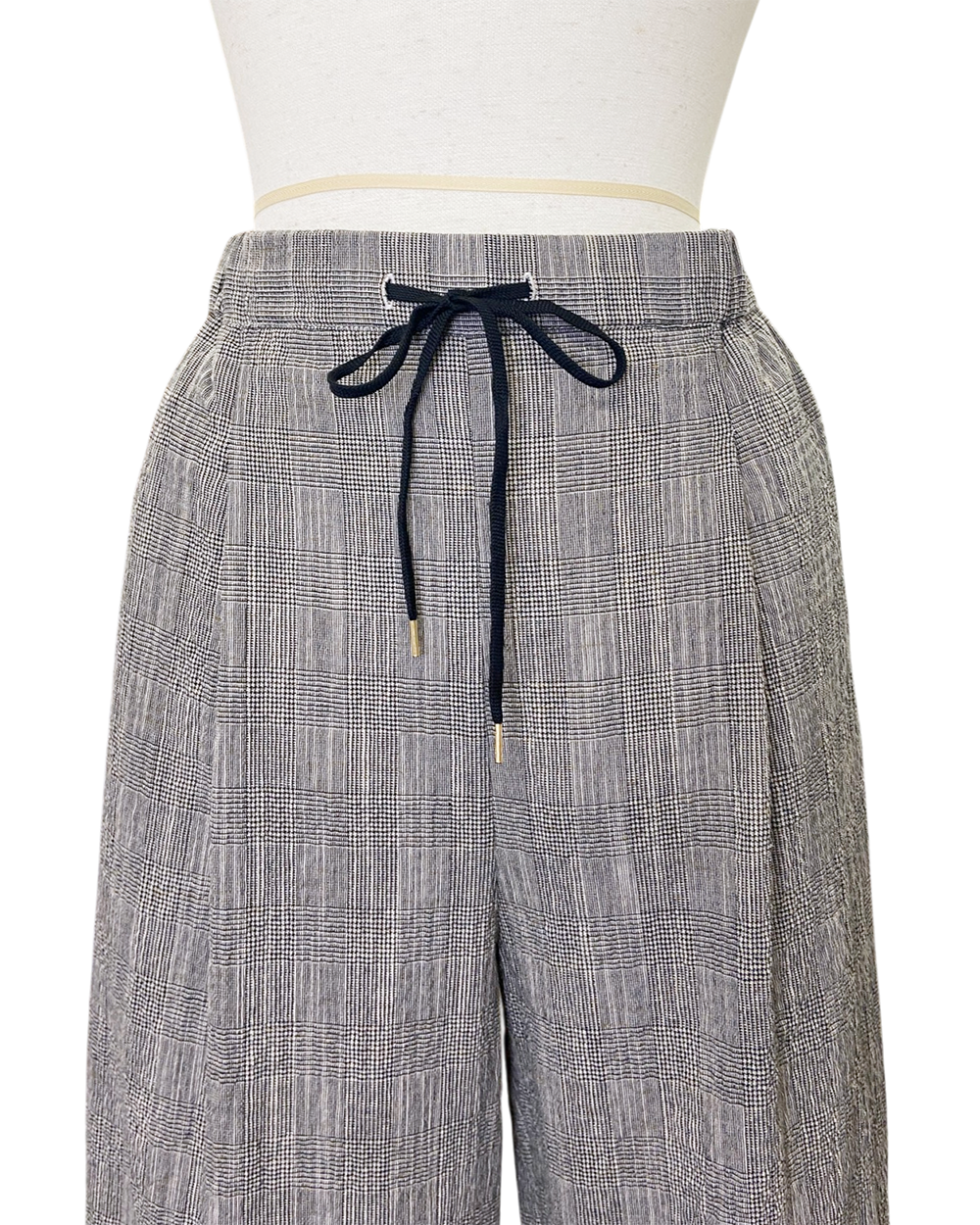 縮緬のような凹凸感が特徴のバンピースラブ生地を使用した、上品なチェックイージーパンツ。