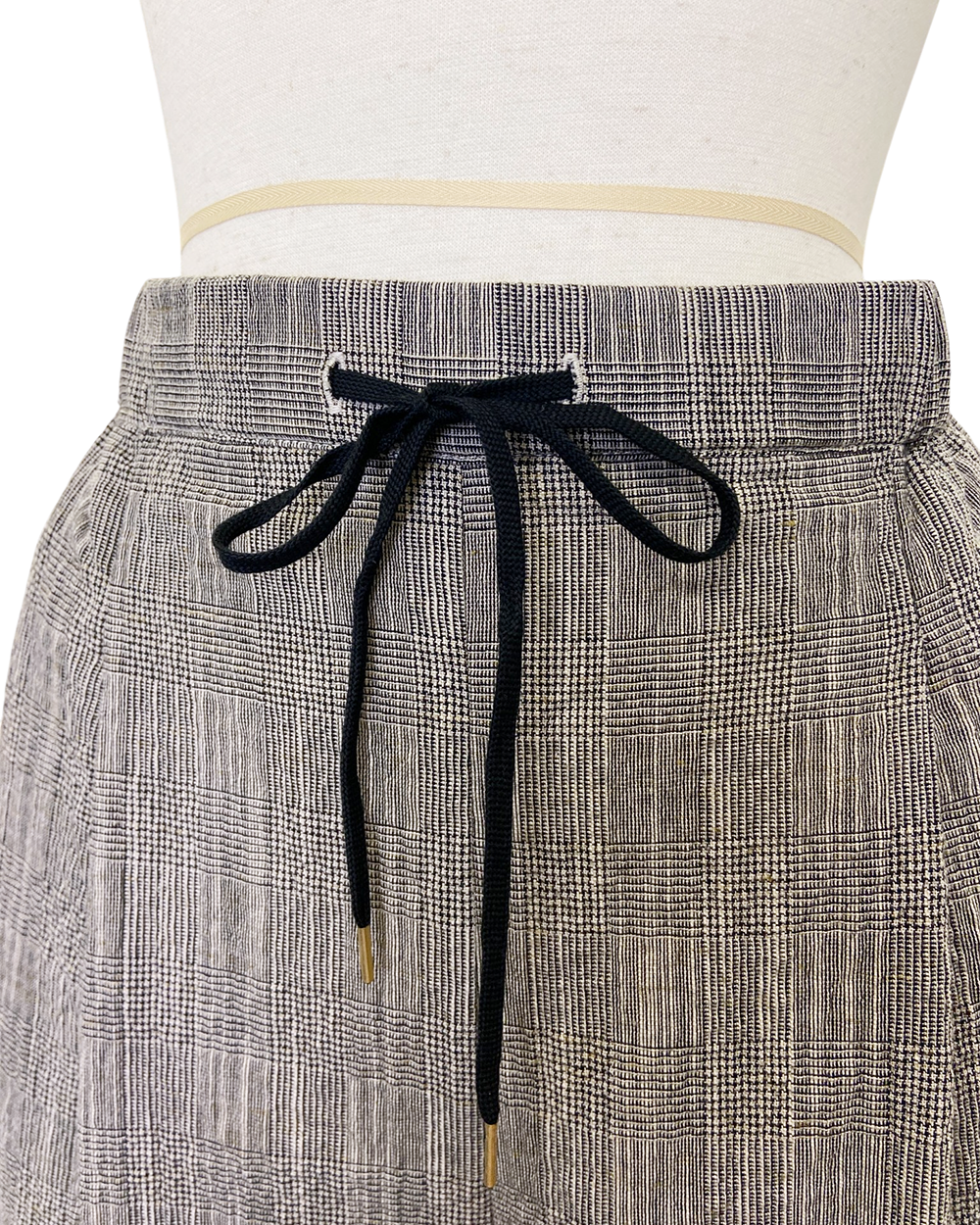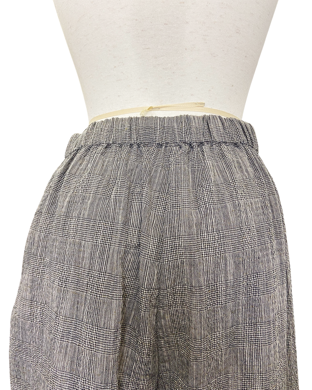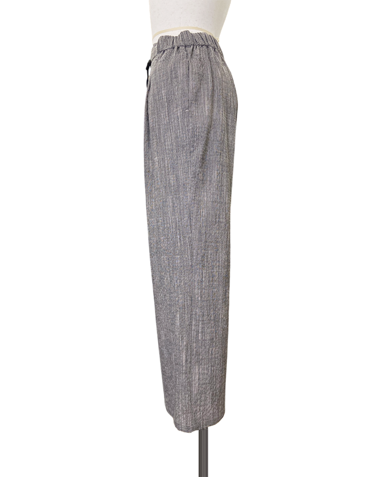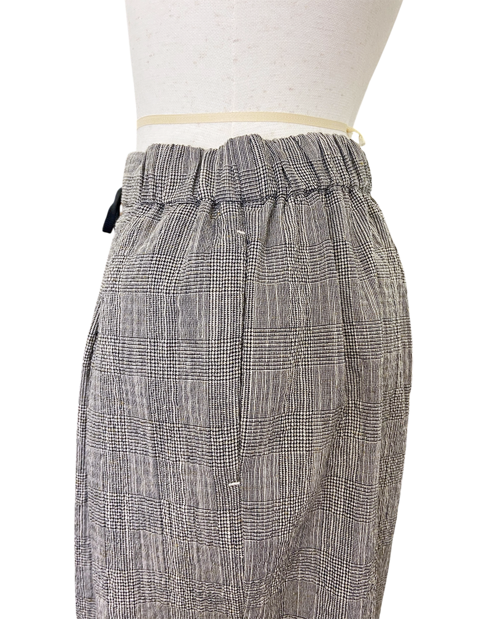 縮緬のような凹凸感が特徴のバンピースラブ生地を使用した、上品なチェックイージーパンツ。