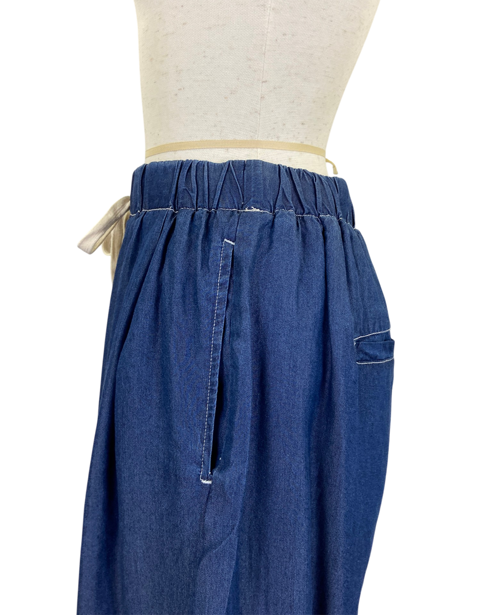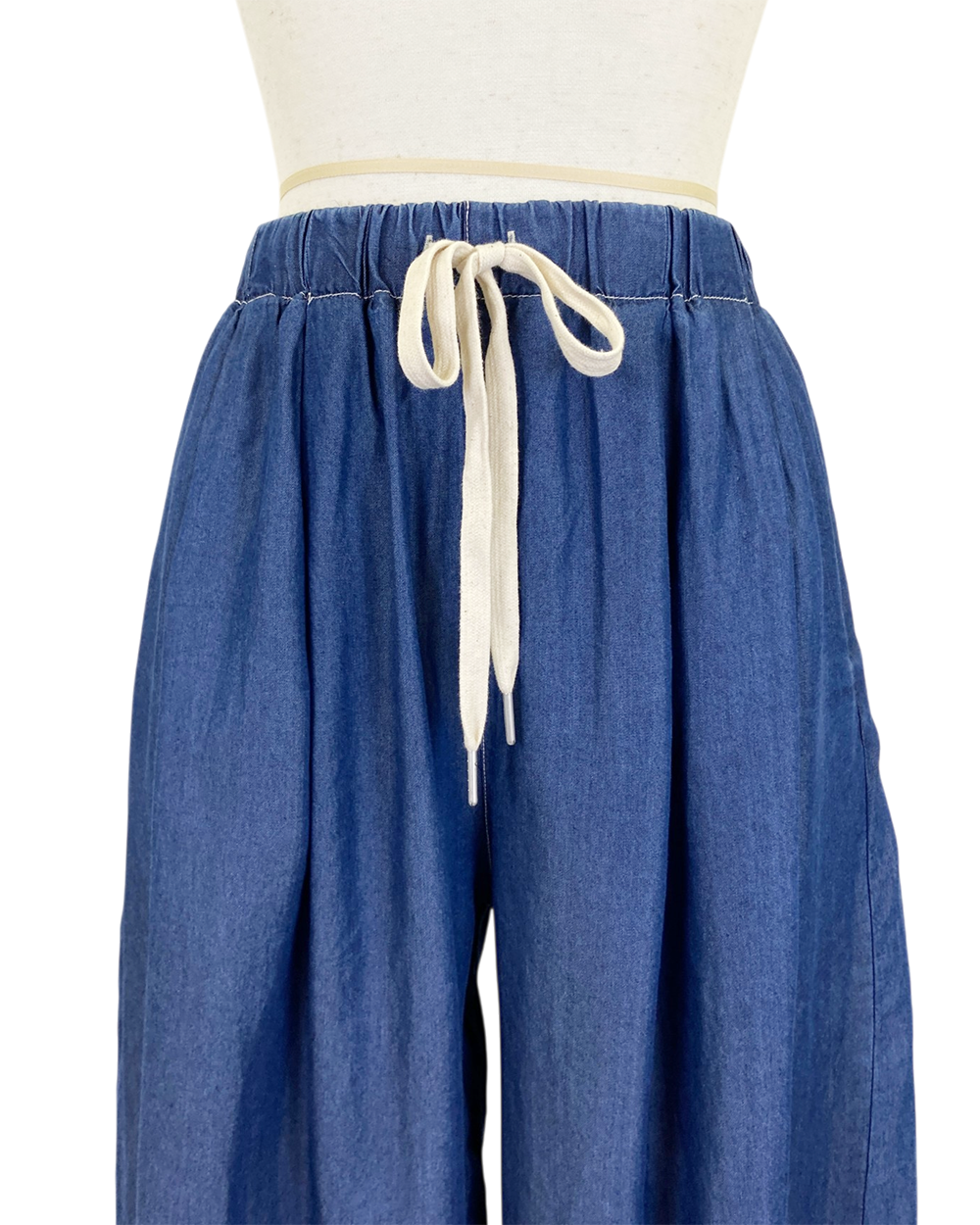 ウエストは総ゴム仕様でドロスト紐付き、リラックス感のある快適な穿き心地です。