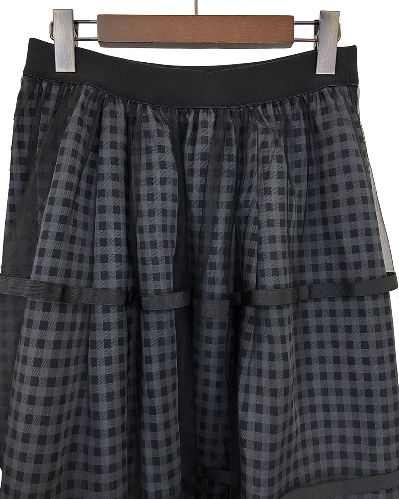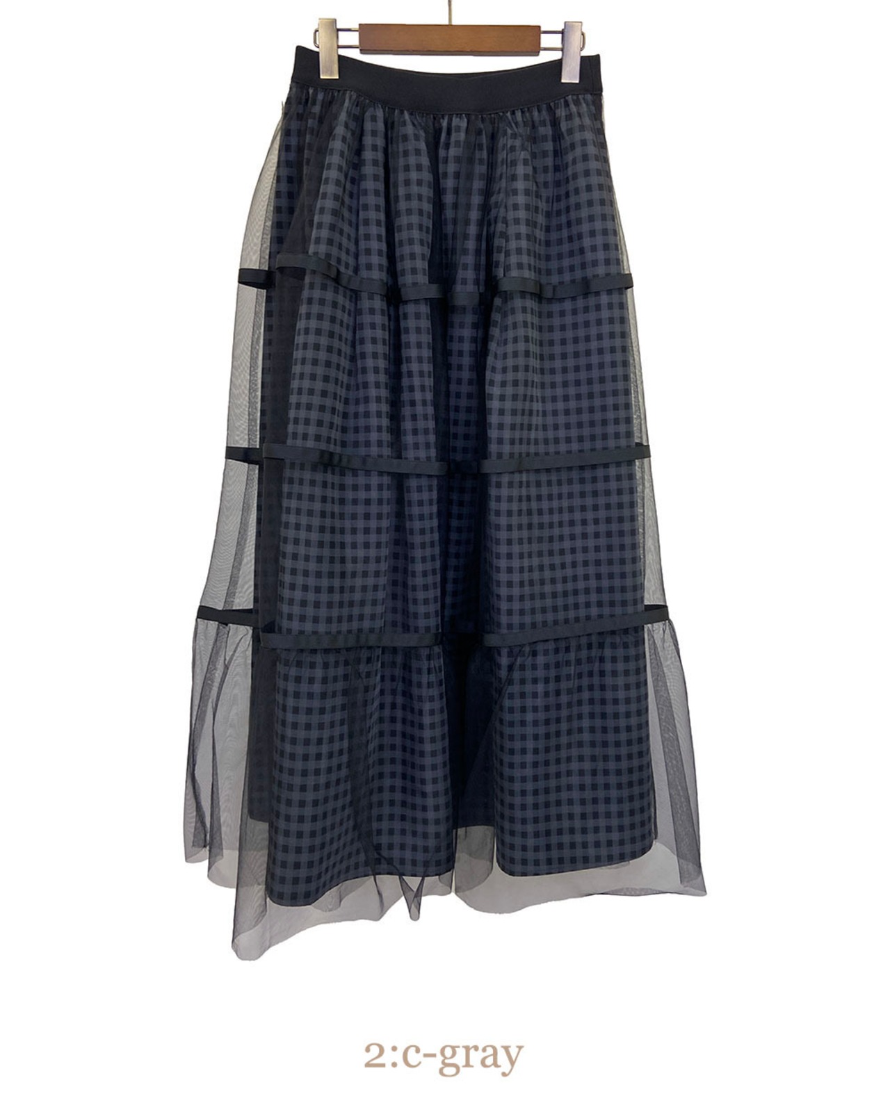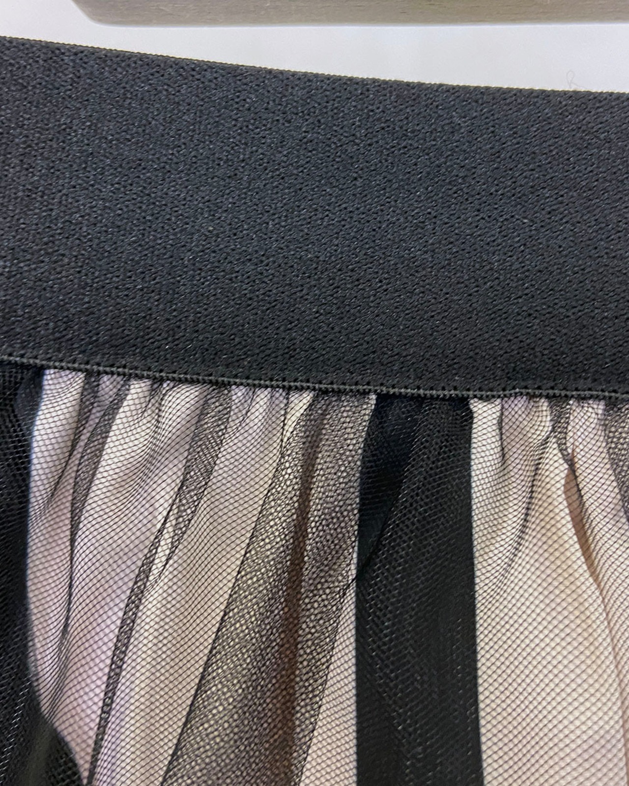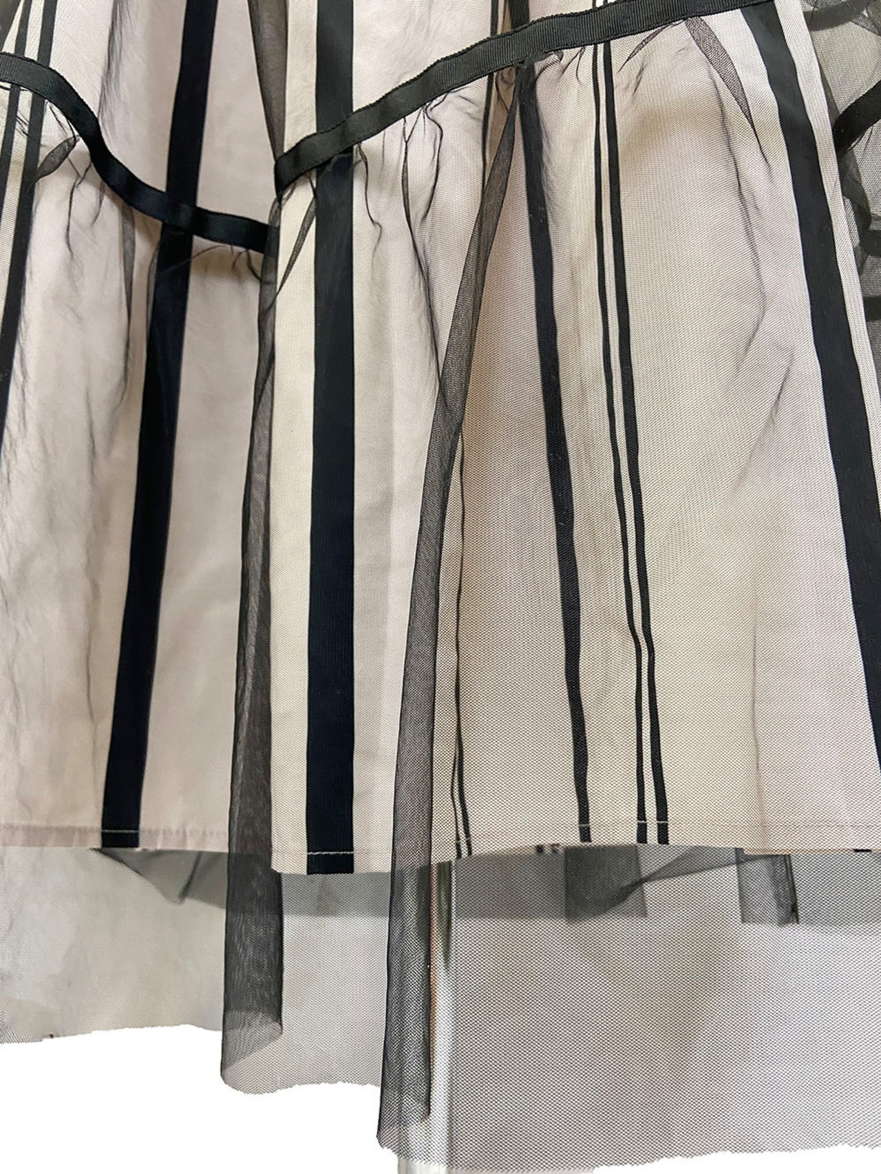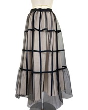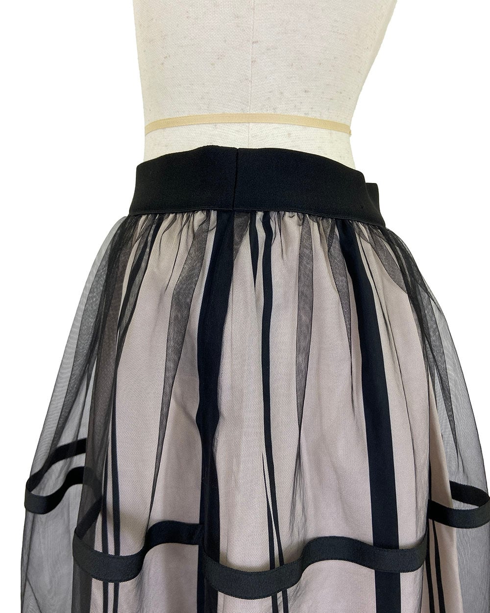 軽やかなギャザーフレアースカートに、ブラックチュールを重ねたレイヤードデザイン。