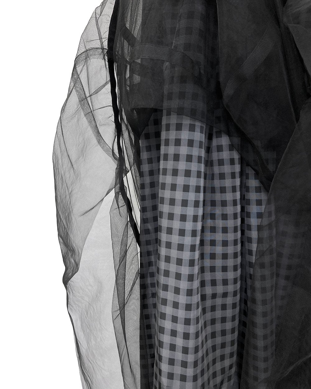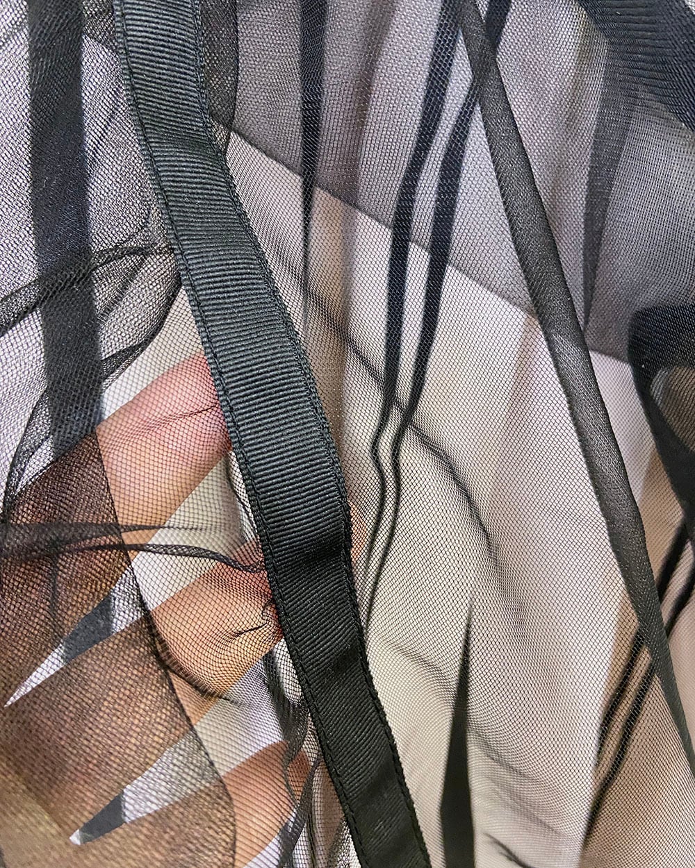 透け感のあるチュールが動くたびに揺れ、エアリーでモードな印象を演出します。