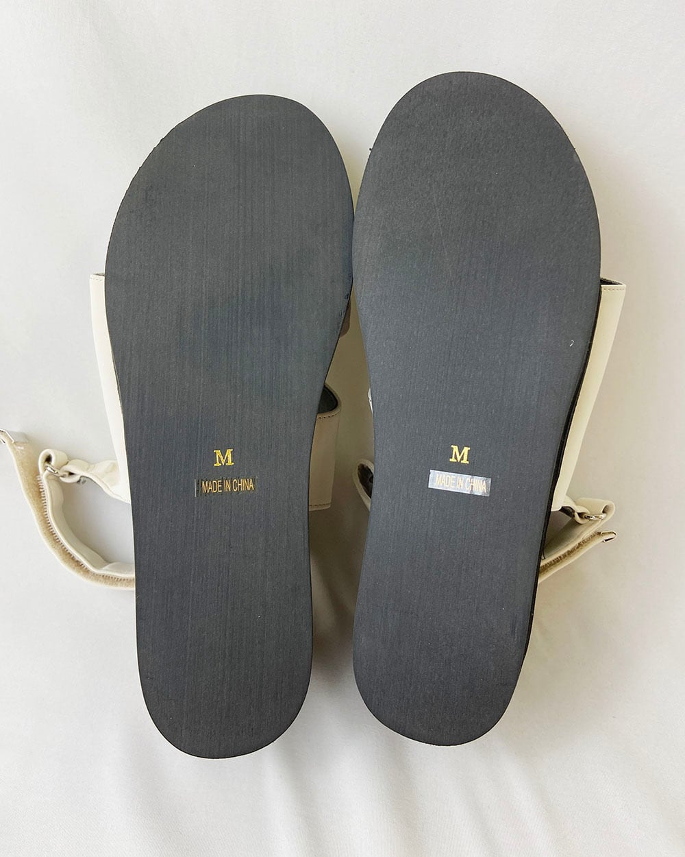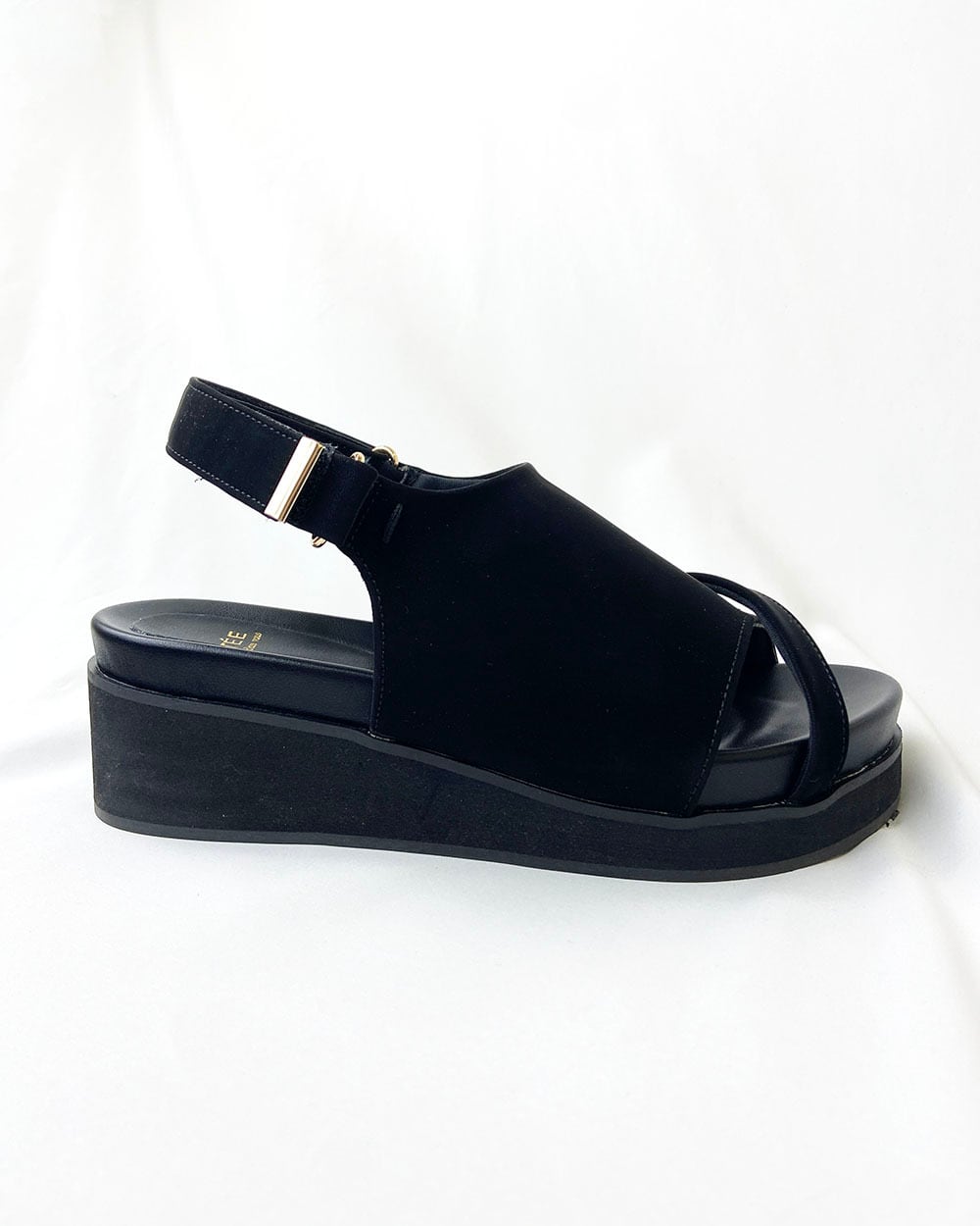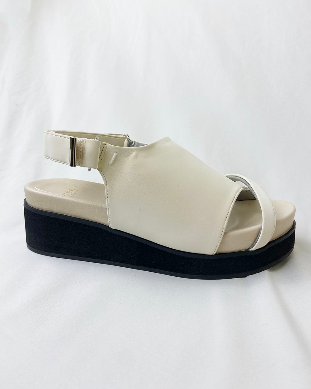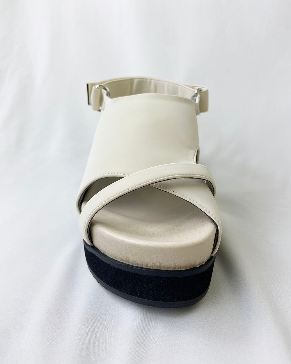 存在感のある厚底ブラックソールが印象的なプラットフォームサンダル。
