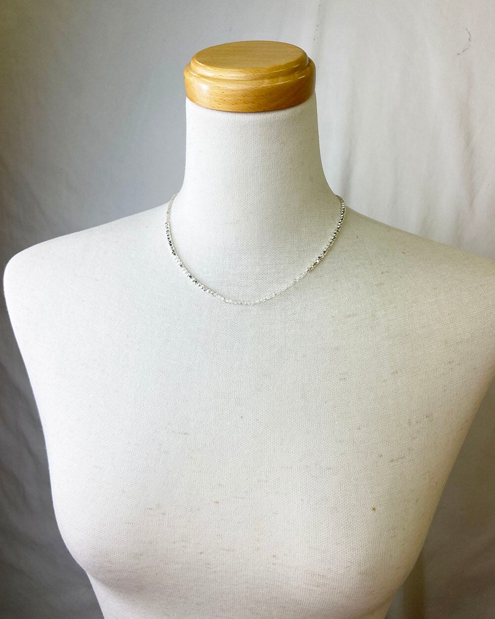 繊細なビーズで仕立てたショートネックレス。