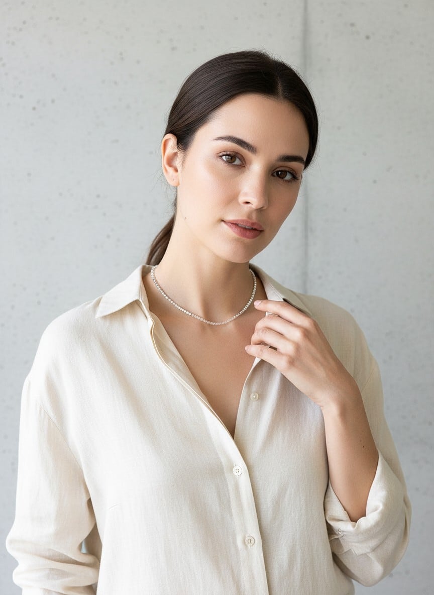 ・シャツの襟元からのぞかせて、さりげない輝きをプラス。