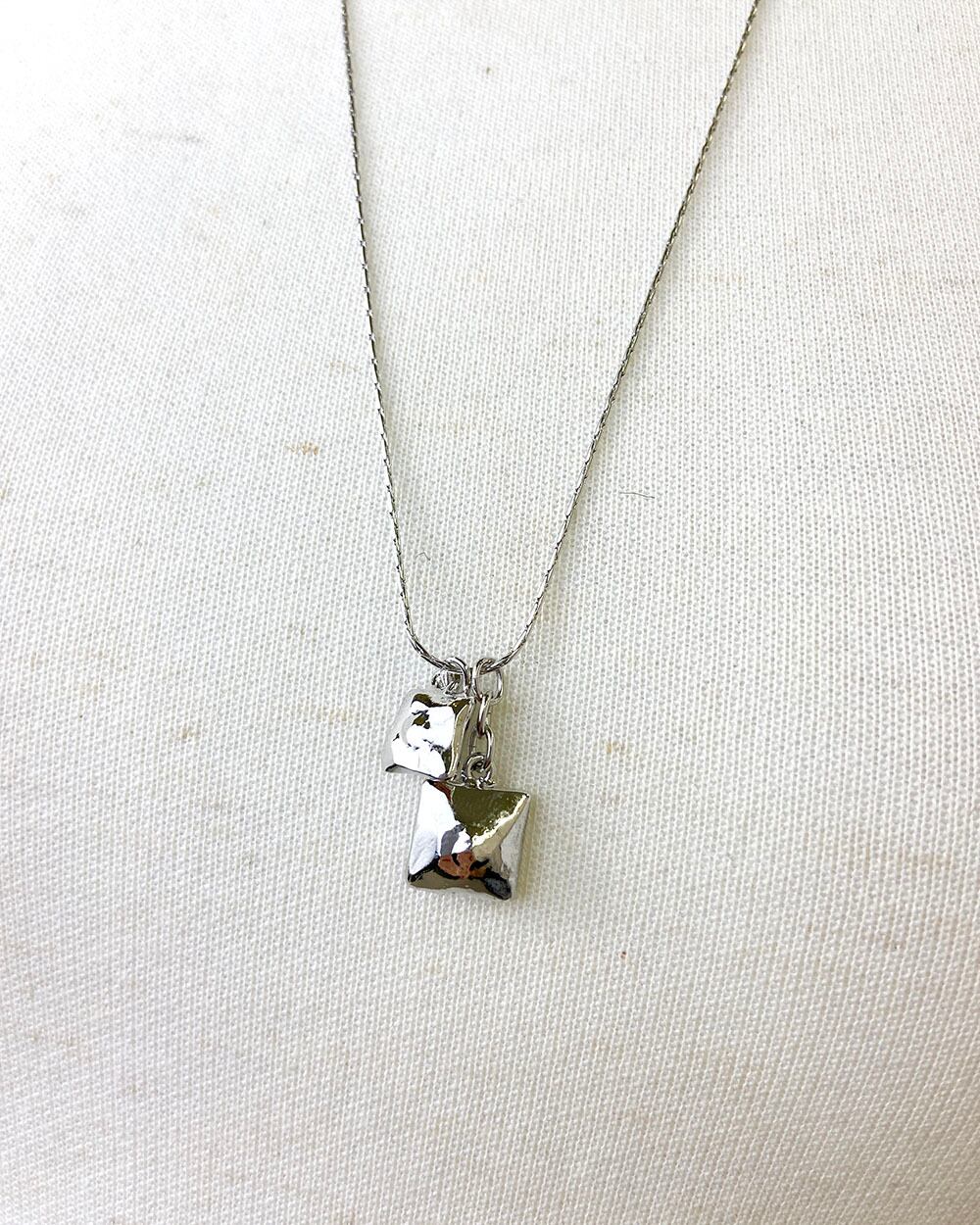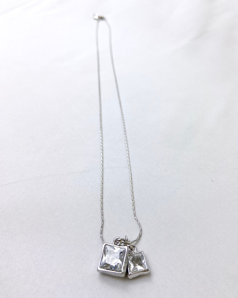 上品に輝く大小スクエア型のジルコニアをあしらった、シンプルで洗練されたネックレス。