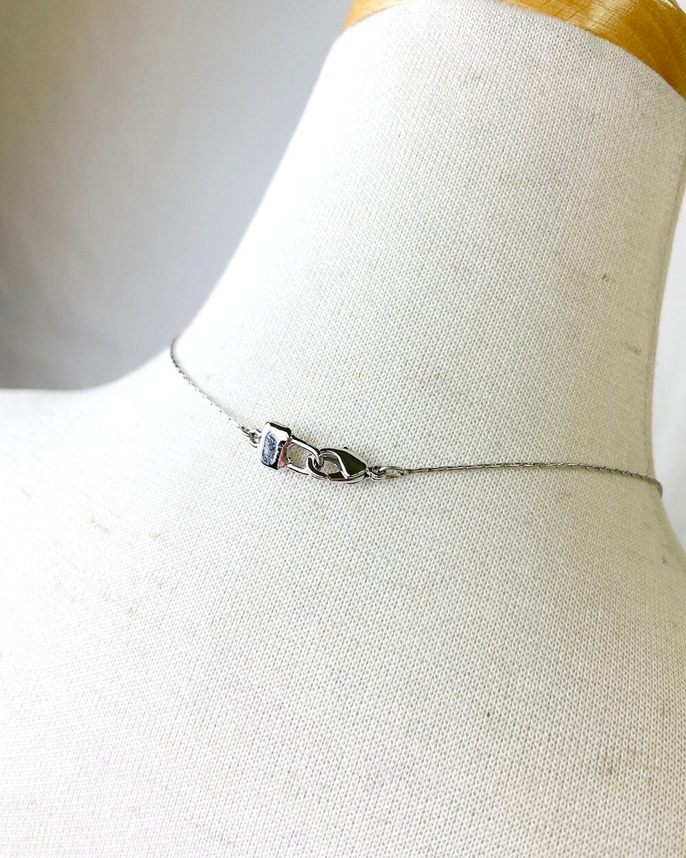 サイズは控えめながらも、光を受けるたびに存在感を放ち、首元を華やかに演出。
