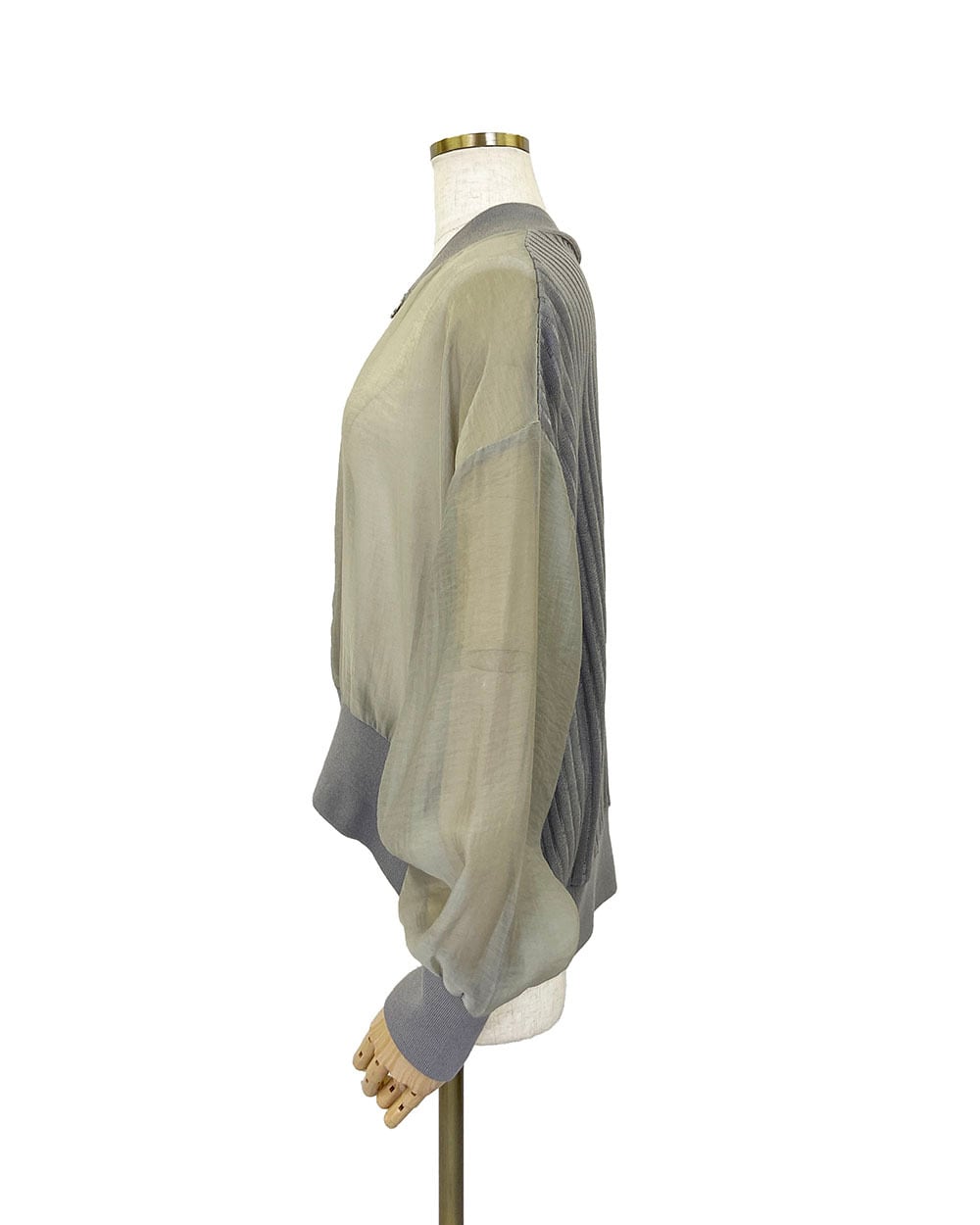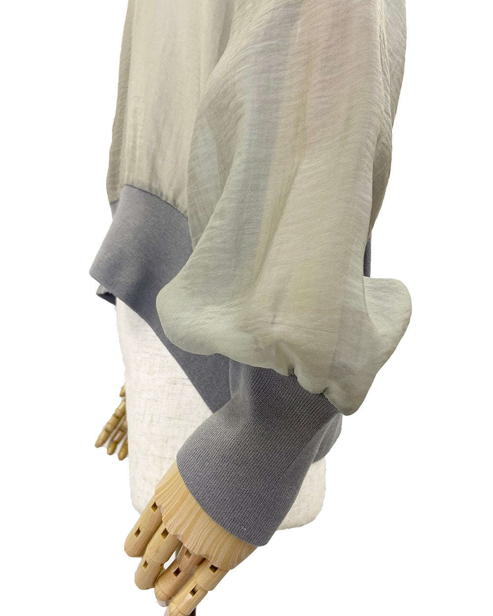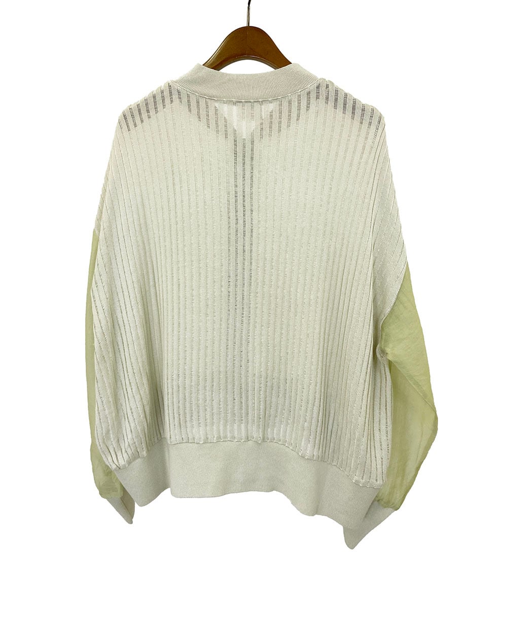 ・透け感のあるローン生地×太リブニットの異素材切り替え