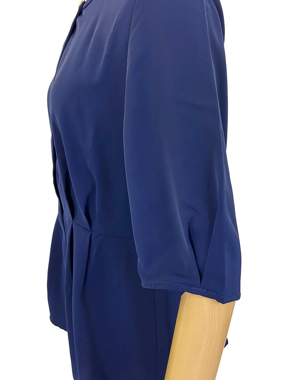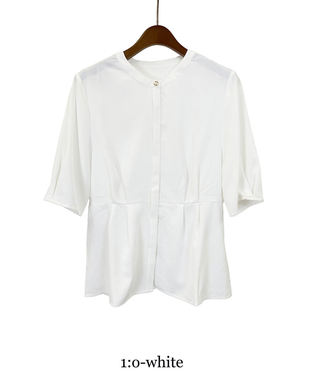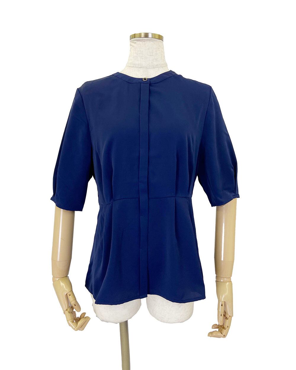 ウエスト位置で前後に切り替え、タックが立体感のあるペプラムブラウス。