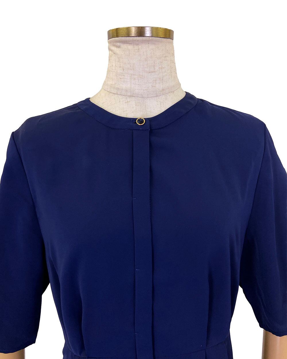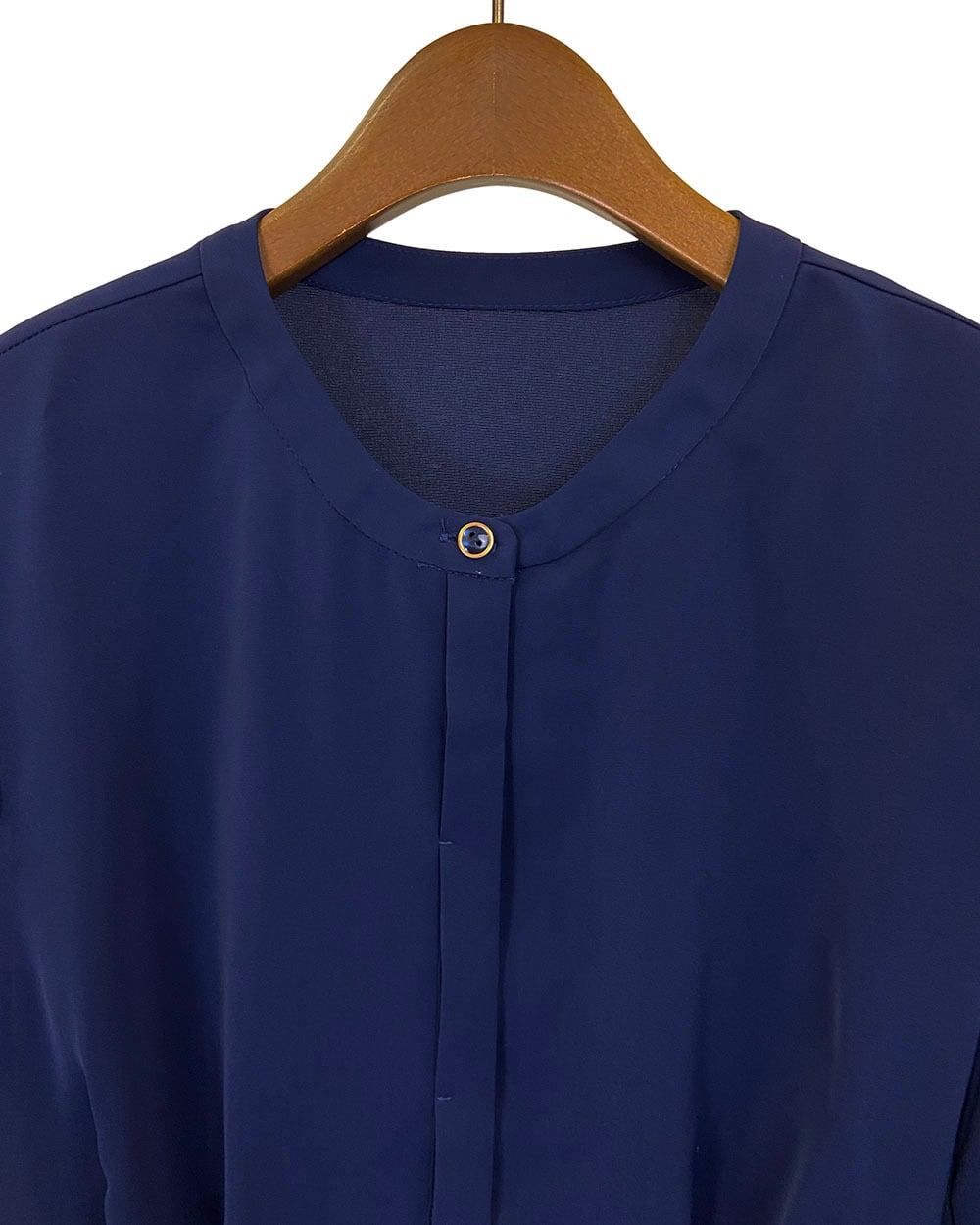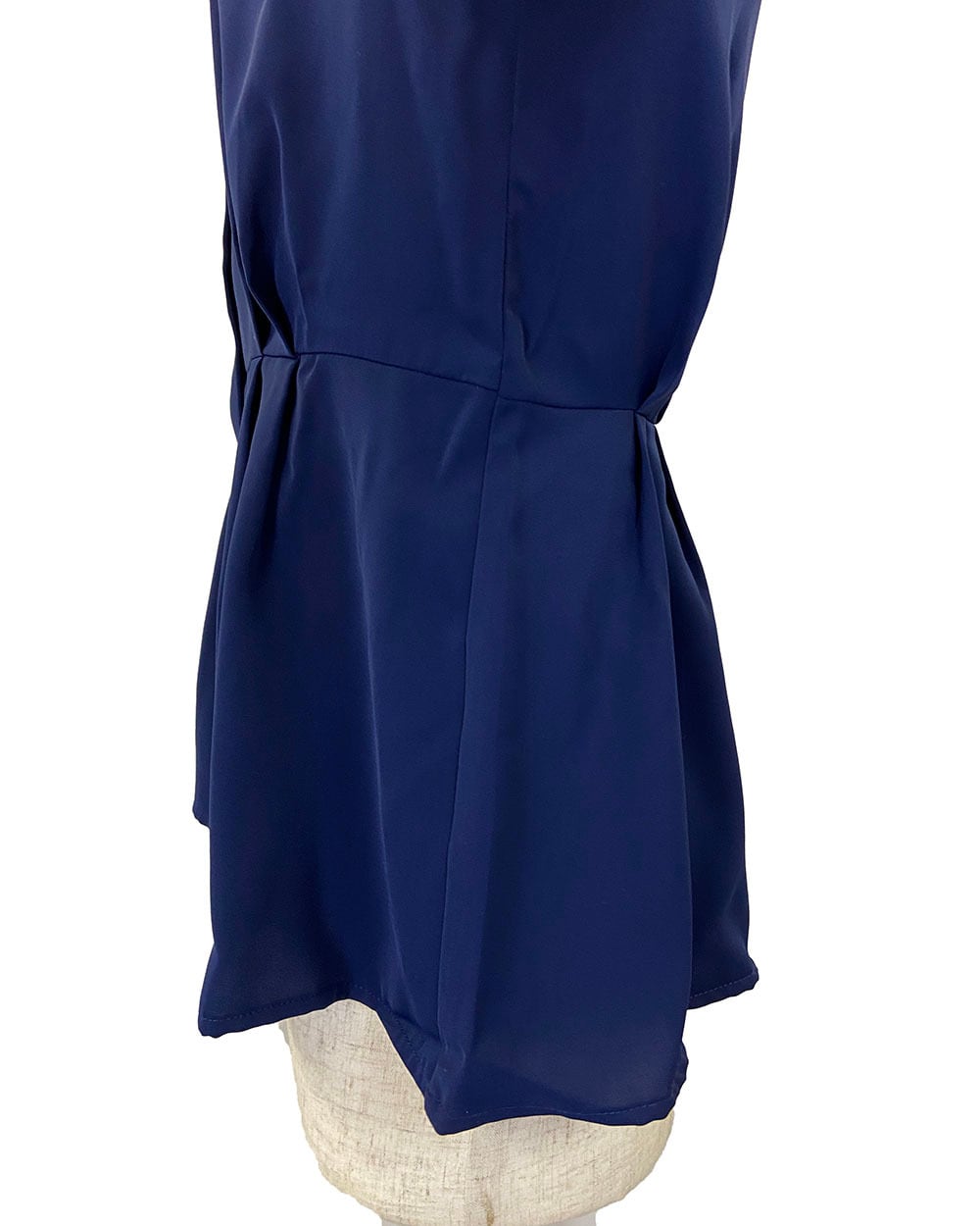 ウエスト位置で前後に切り替え、タックが立体感のあるペプラムブラウス。