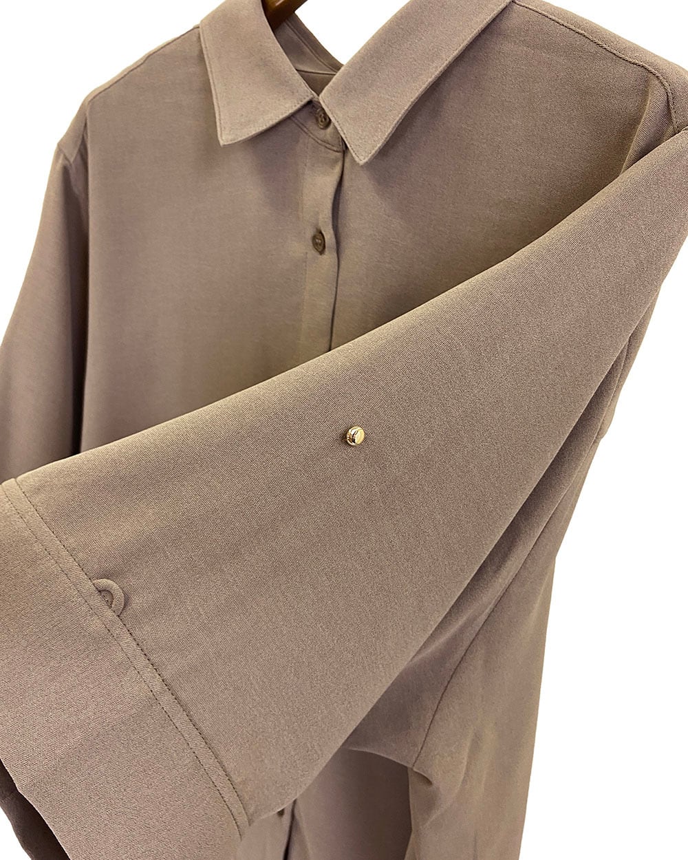 軽くてさらりとした肌触りが魅力の、エアリーポリタンブラー生地を使用したブラウス。