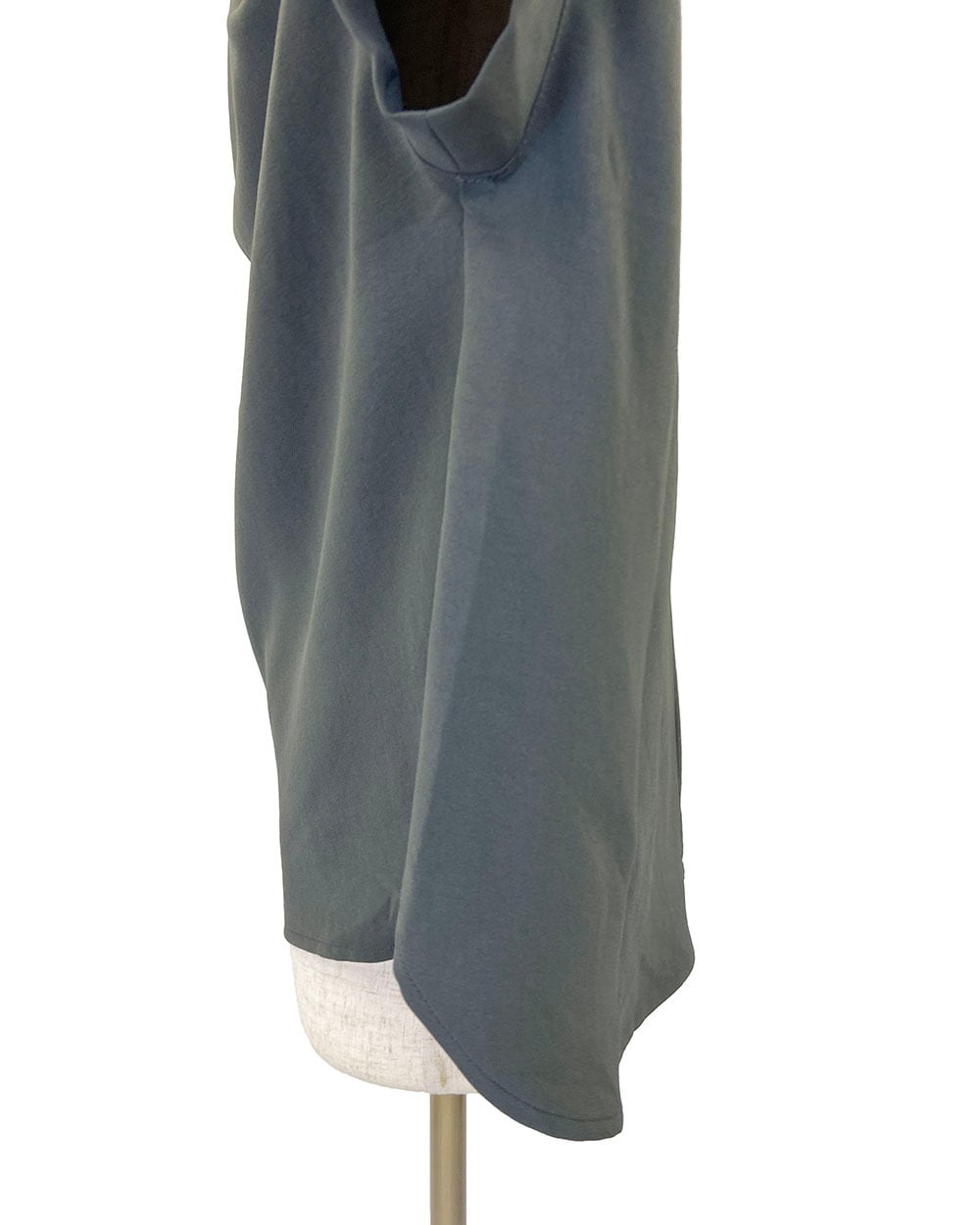 裾はラウンドヘム仕様で、タックイン・アウトどちらのスタイルにもバランスよく決まります。