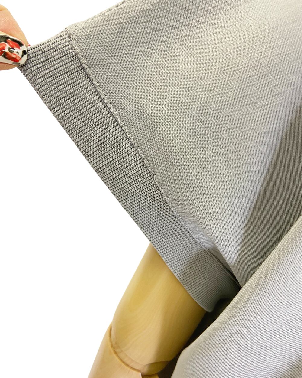 袖口と首周りはリブ仕様ですっきりとまとめ、着心地の良さと上品な印象を両立。