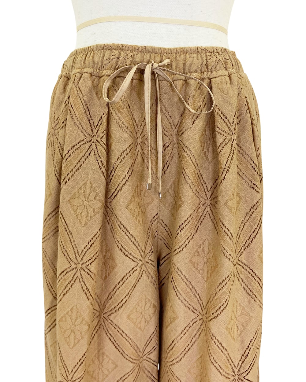華やかなパッチワーク風レースを使用した、イージーパンツ。