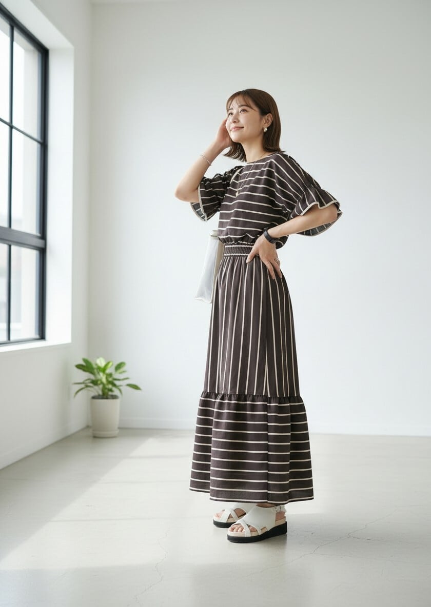 ティアードのふんわりとしたシルエットが女性らしく、デイリーに活躍する一枚です。