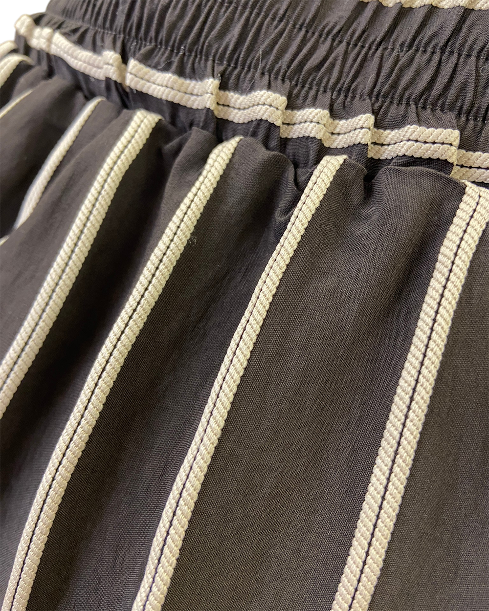 切り替え部分でストライプからボーダーに柄が変わる遊び心のあるデザインが、コーディネートに動きと華やぎをプラスします。