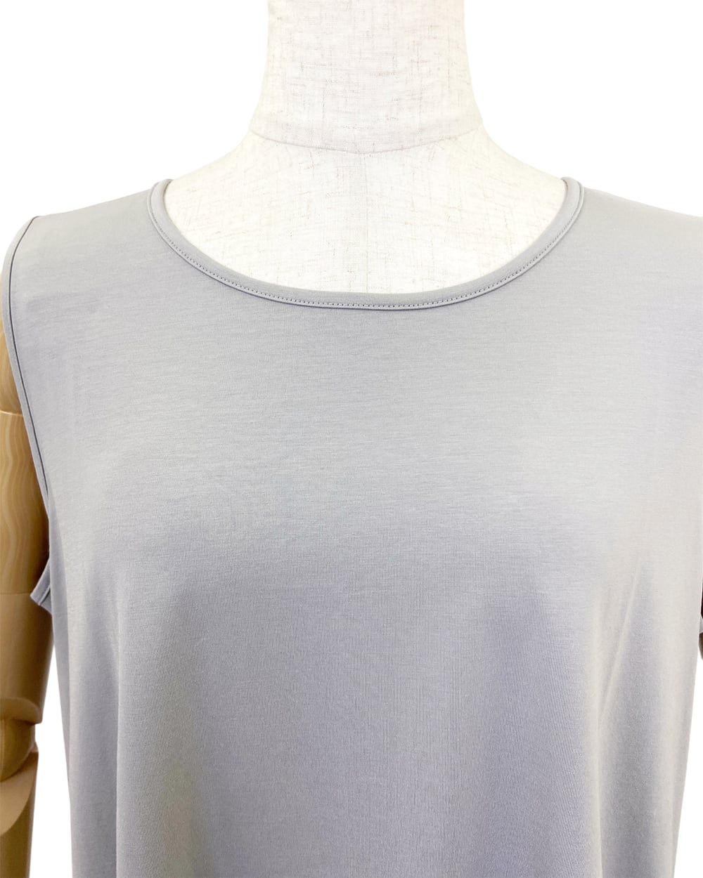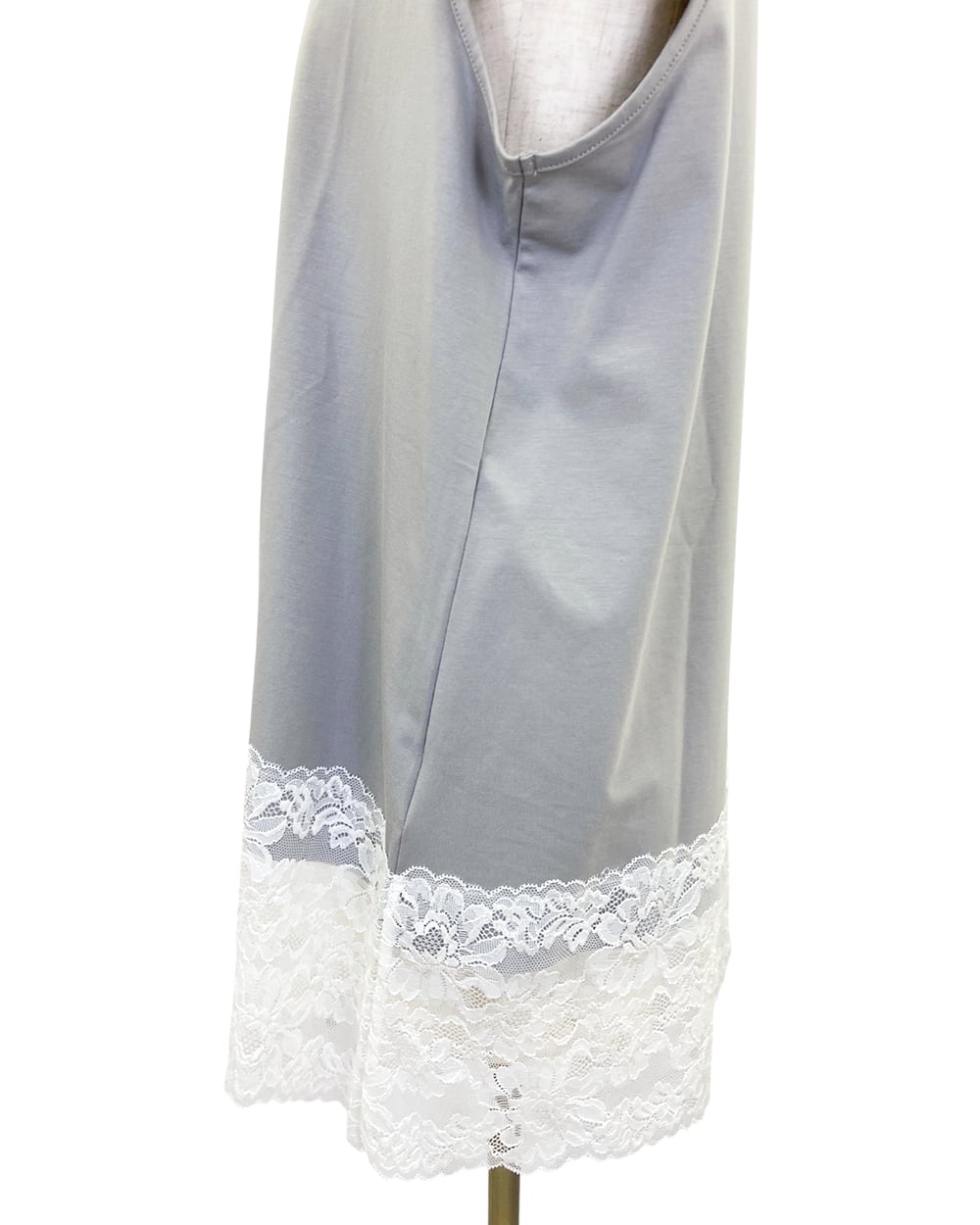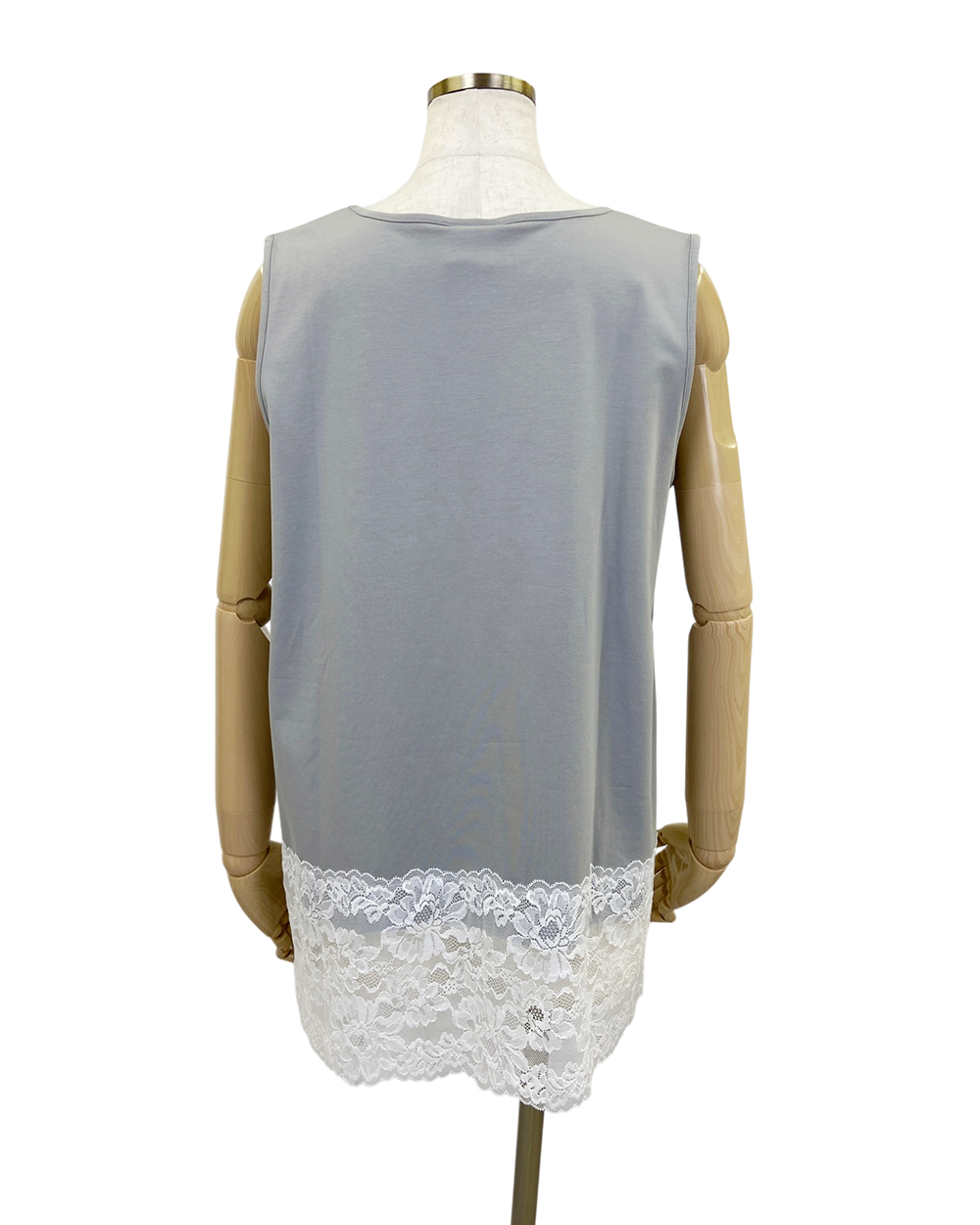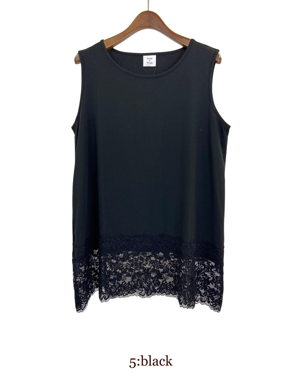 裾に繊細なレースをあしらった、チュニック丈のタンクトップ。
