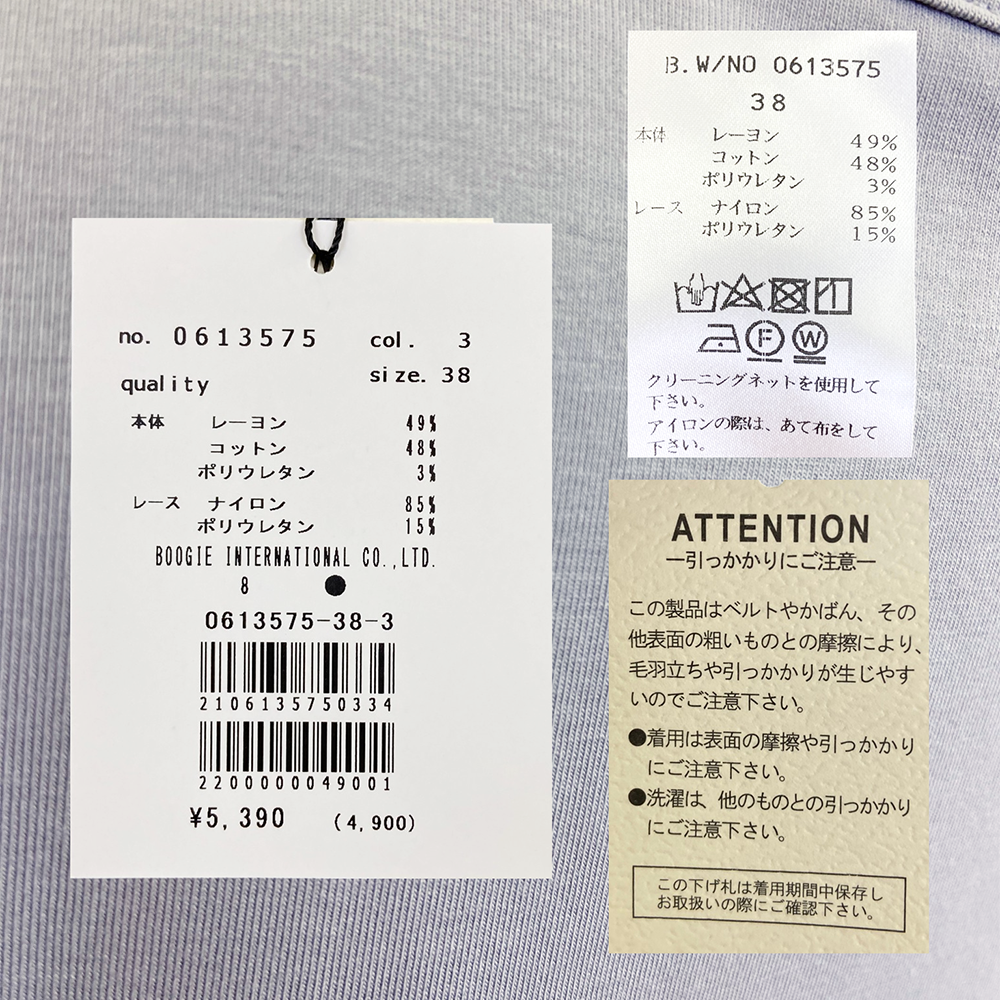 裾のレースが女性らしい華やかさをプラスし、シンプルなデザインに上品なアクセントを添えます。