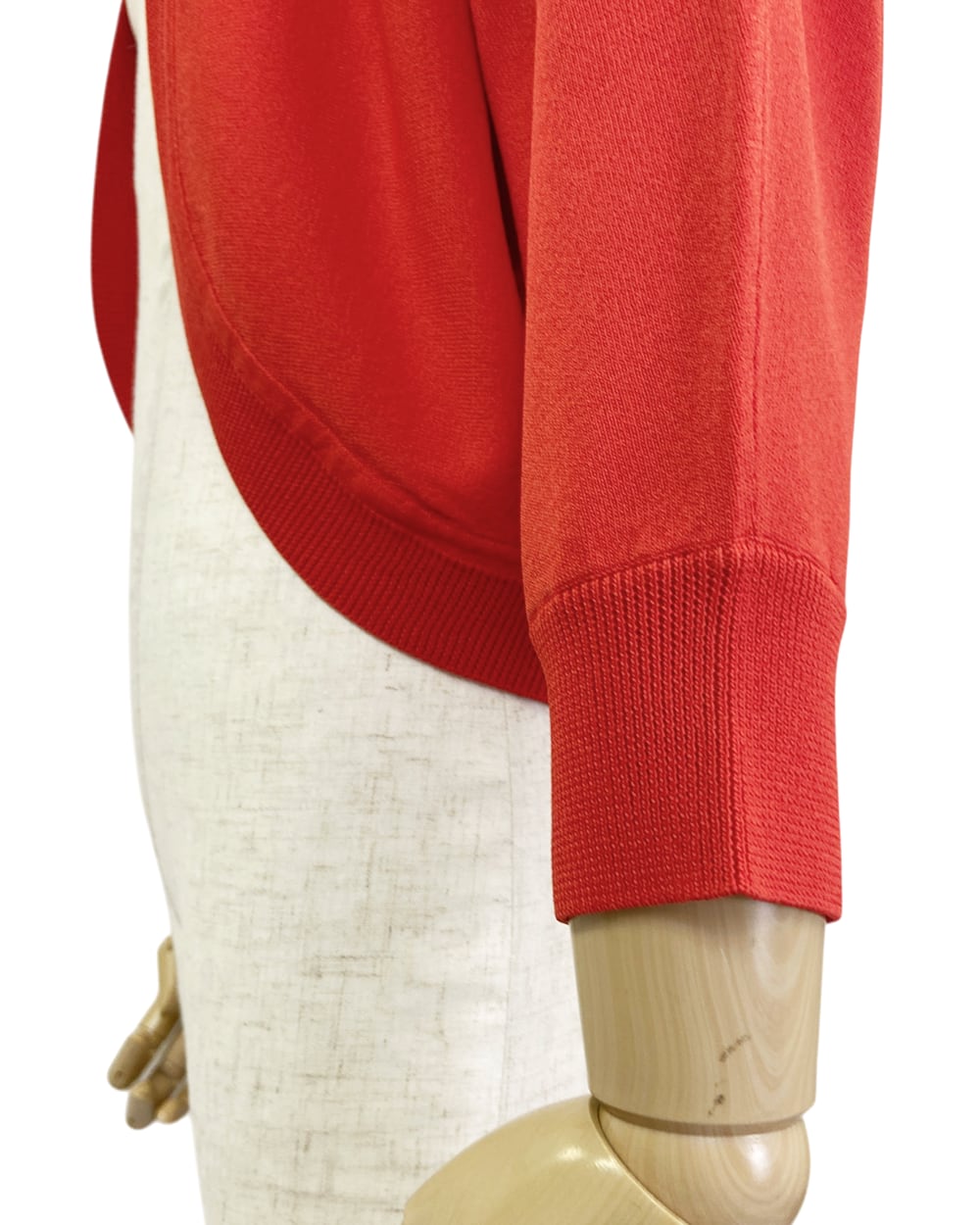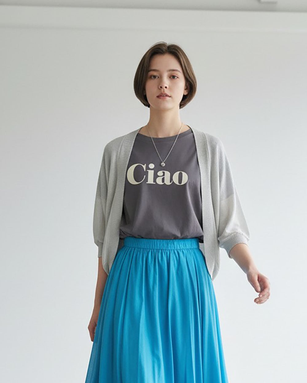 ラウンドヘムのデザインが柔らかな印象を添え、体のラインを拾いすぎず自然なシルエットを演出します。