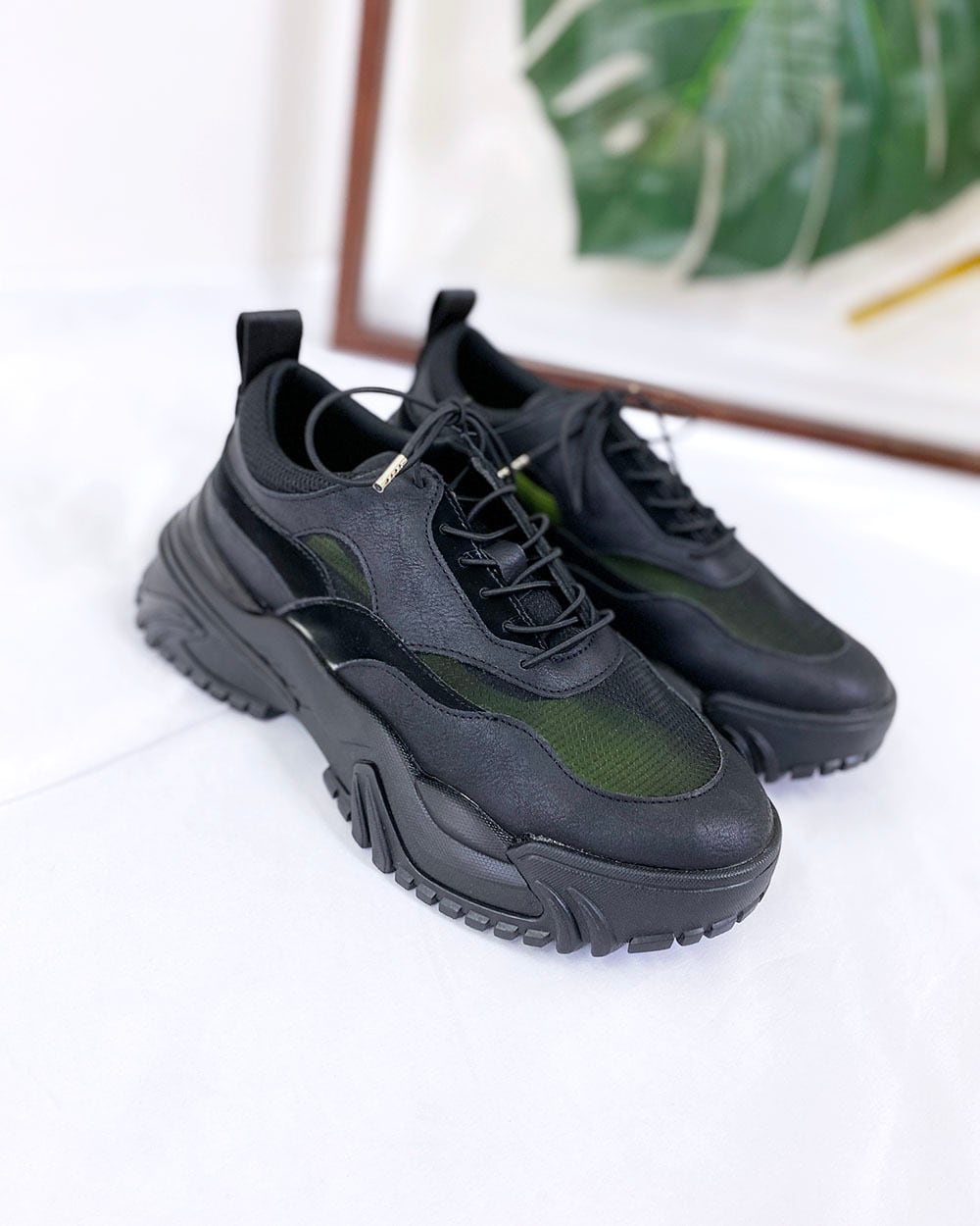 プラットフォームデザインのボリュームあるスニーカー。