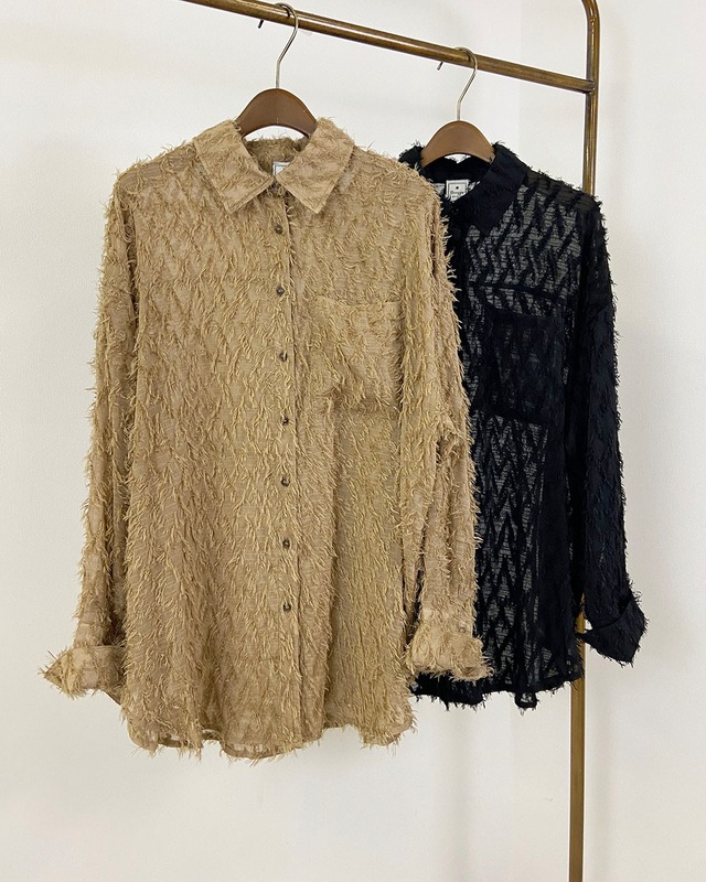 フェザーライクシアーシャツ no.7522093¥9,790-(税込) ●デザイン 羽のようなふわふわとした質感と程よい存在感のあるブラウス。 シンプルでもこなれて見える一枚です。 程よくゆとりあるオーバーサイズ感。 シアーな透け感がコーディネートを軽く仕上げます。 裏地なし ●素材 透け感:あり 生地の厚さ:薄い 伸縮性:なし ●カラー 1:ベージュ 2:ブラック ●お手入れ方法 手洗いできます。 ※付属の洗濯表示に従ってください。 ●quality 表地 :ポリエステル99% :ポリウレタン1% ●サイズ(cm/平置き)38(M)サイズのみ 肩幅 :57 バスト:62 袖丈 :54(内カフス:13) 着丈 :76 モデル:-cm ※照明などにより、実際よりも色味が違って見える場合があります。 またパソコン・スマートフォンなどの環境により、若干製品と画像のカラーが異なる場合もございます。予めご了承ください。 ※サイズガイド https://boogie.buyshop.jp/p/00002